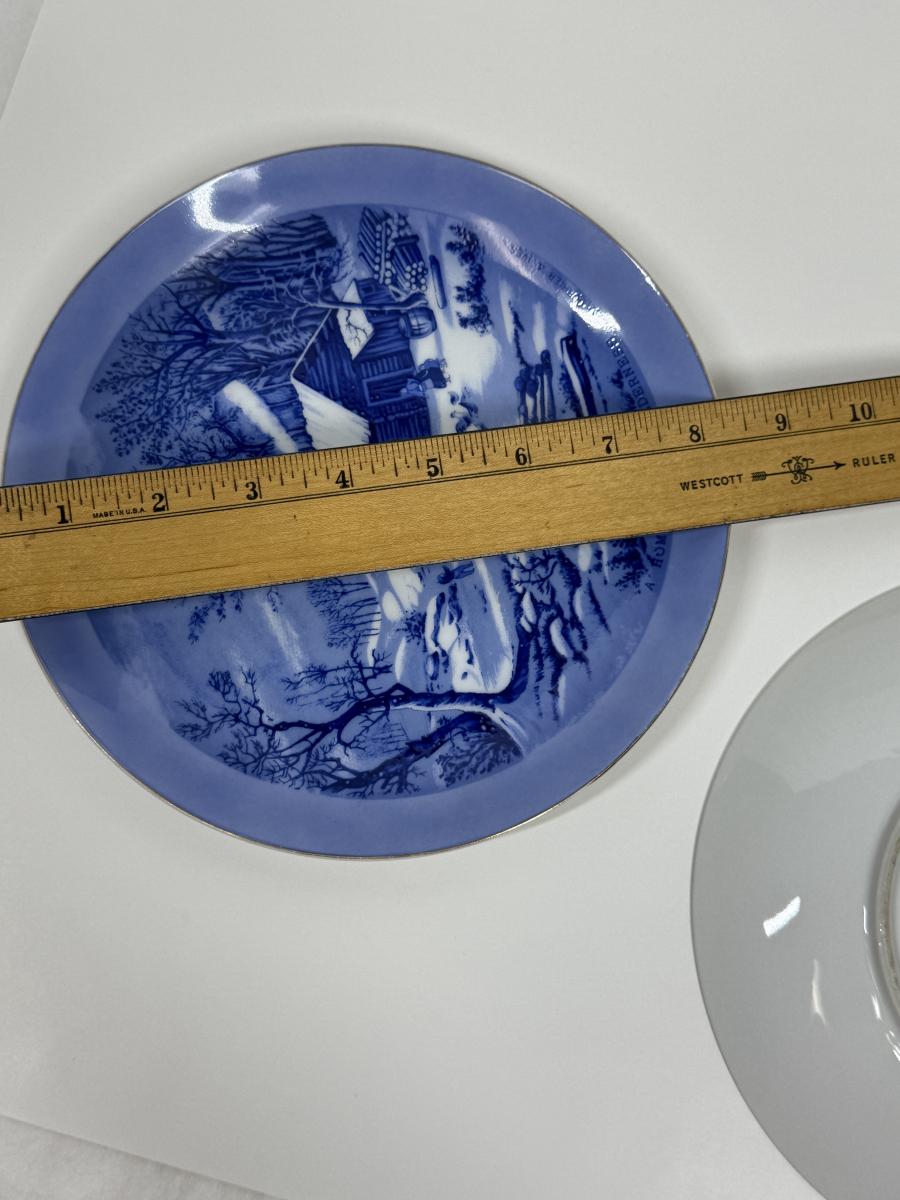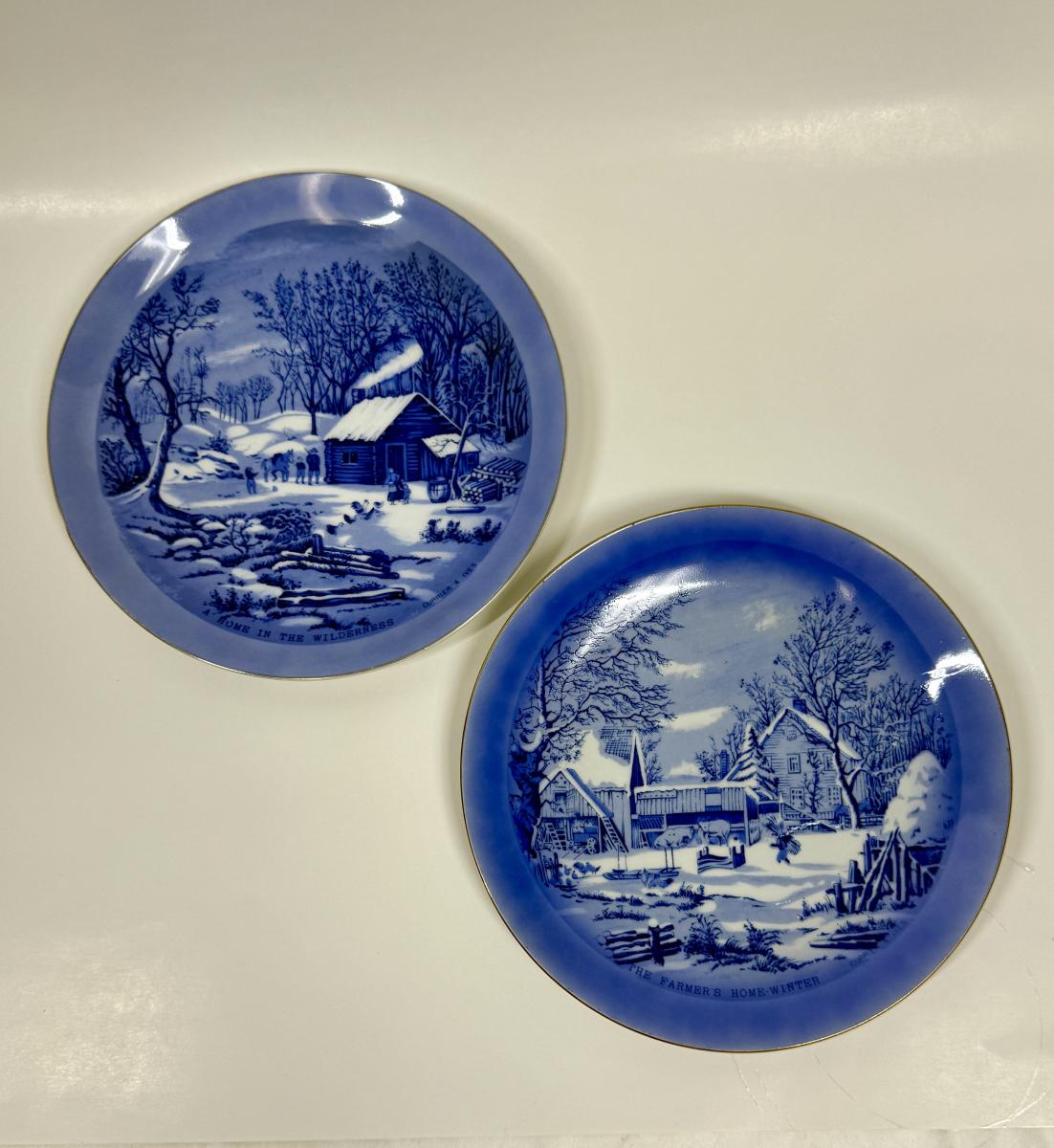 CURRIER & IVES COLLECTOR PLATES ~ Blue and White, "The Homestead in Winter"