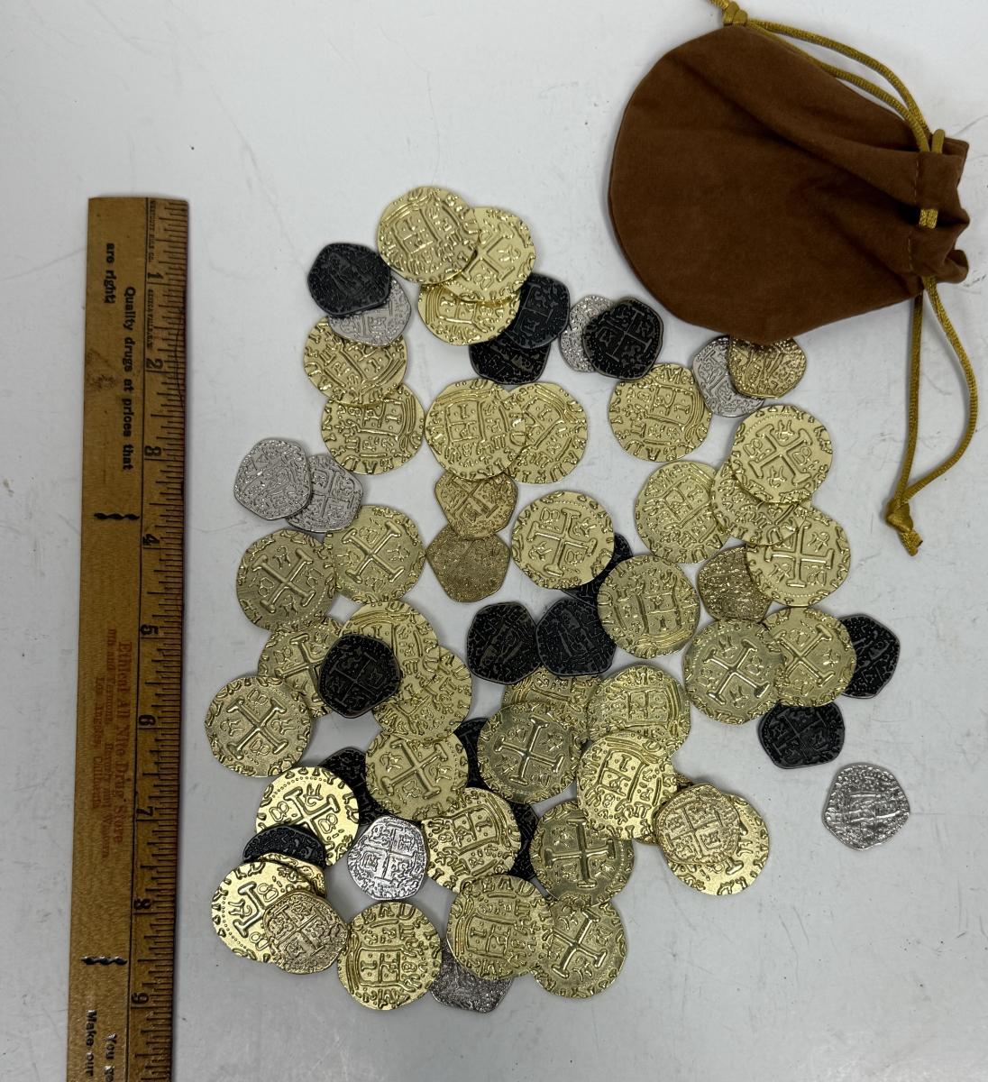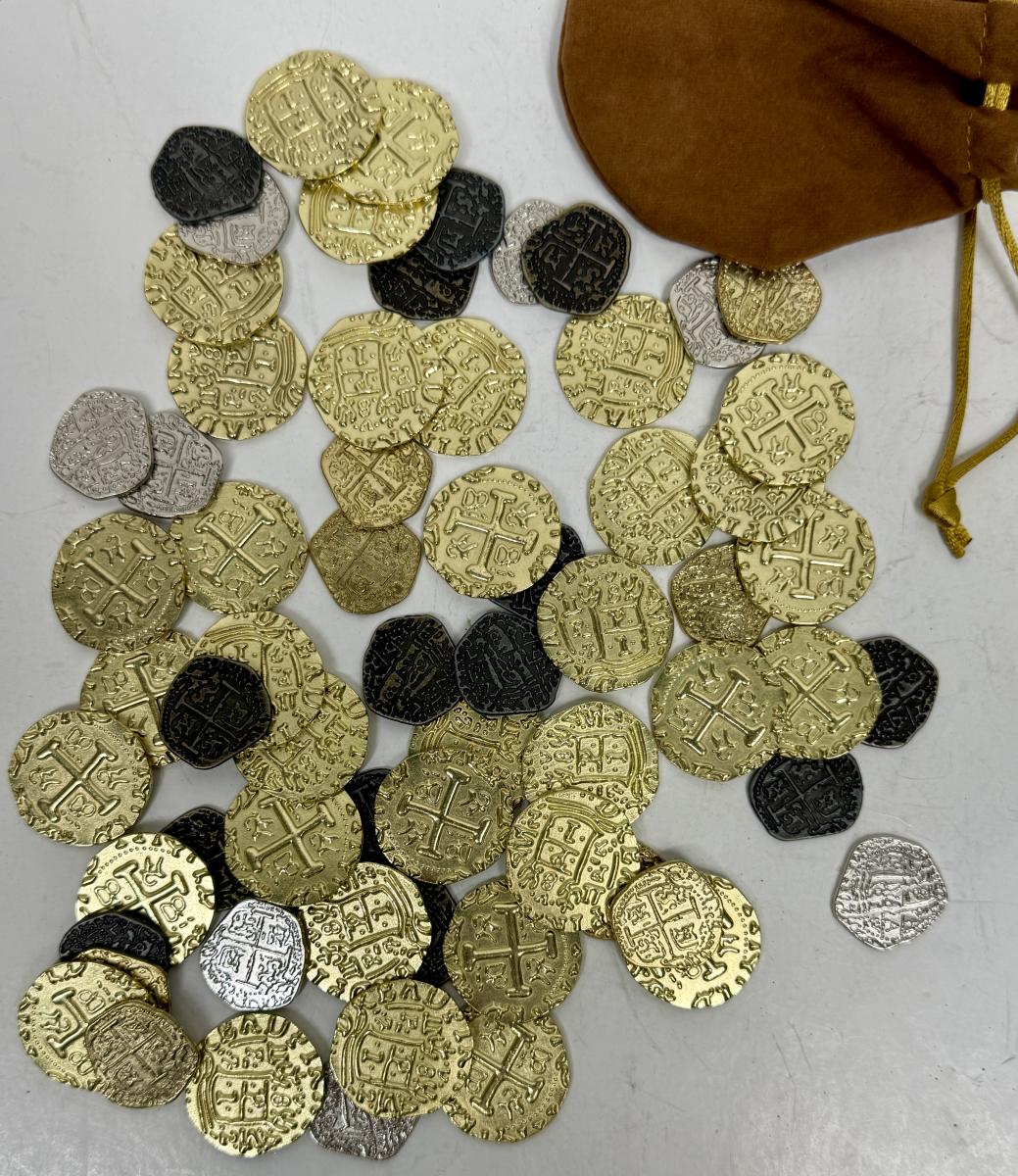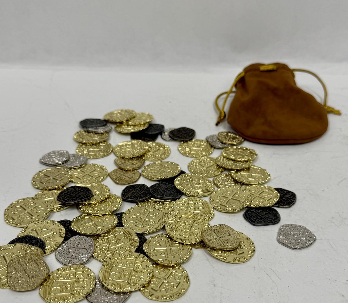 Pirate Treasure Coins 3 color finishes in brown pouch