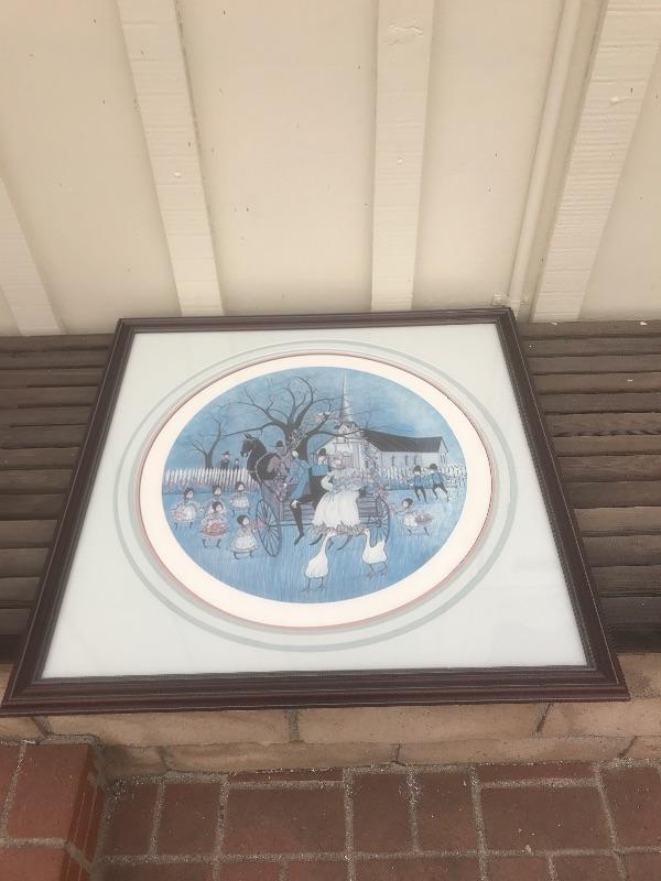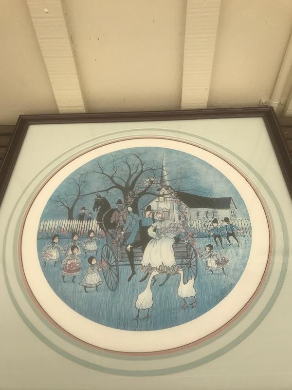 Auction item # 14: Artwork by P Buckley Moss, an American artist known for painting and etching. She was born in New York City, raised on Statton Island, and became an artist in Waynesboro, Virginia. Watch video on 50 years of her art.