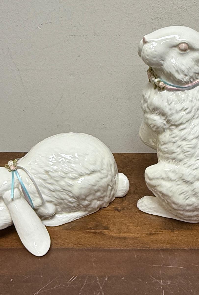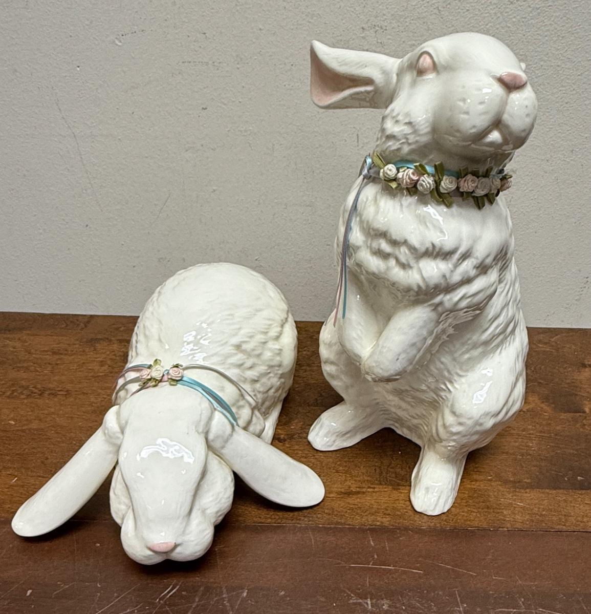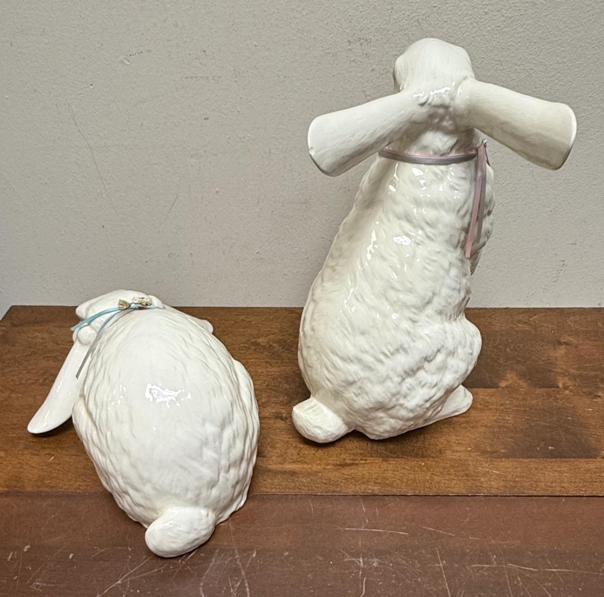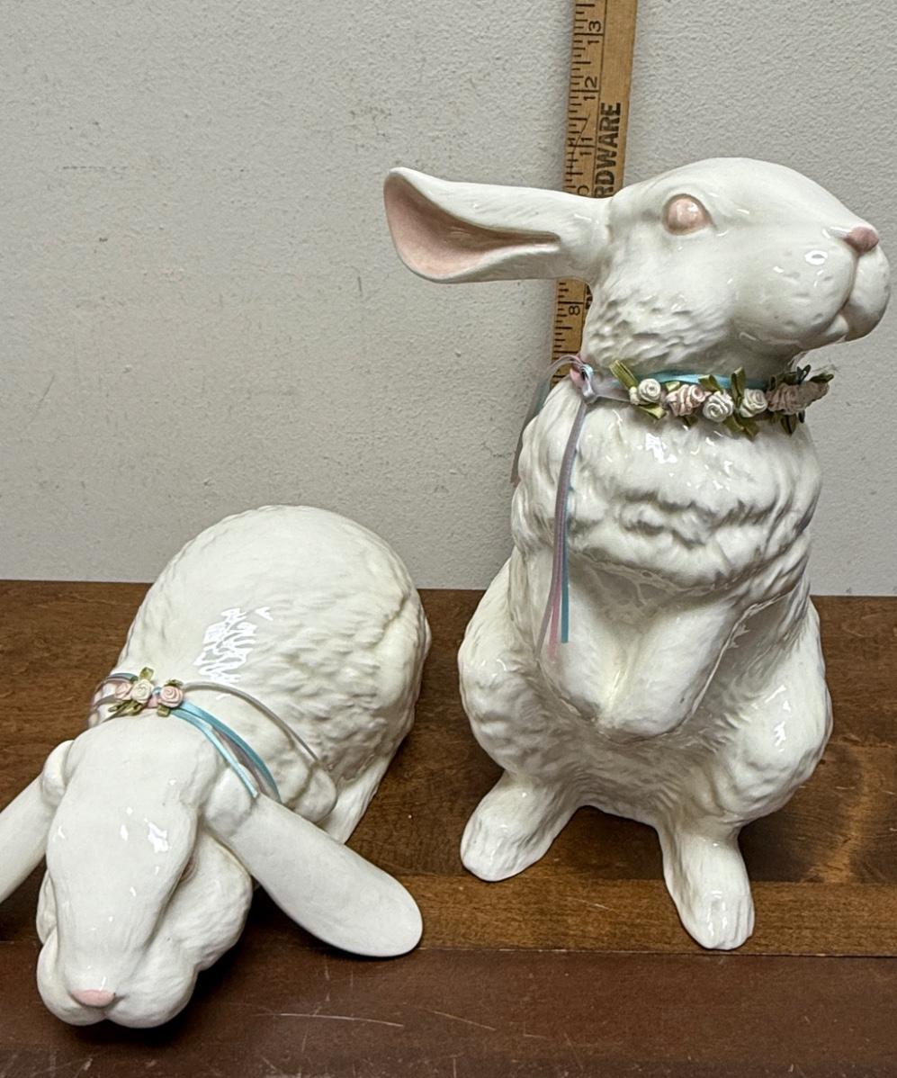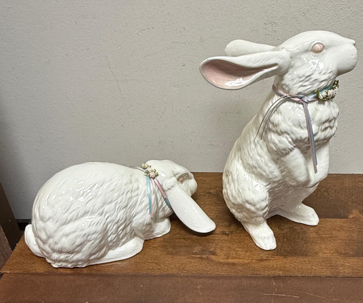 Vintage Arnart Ceramic White Easter Bunny Rabbit figurines set 12" tall
