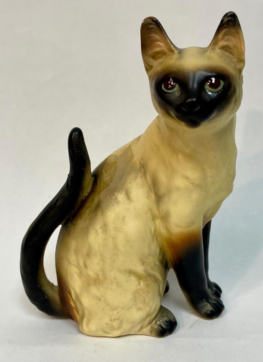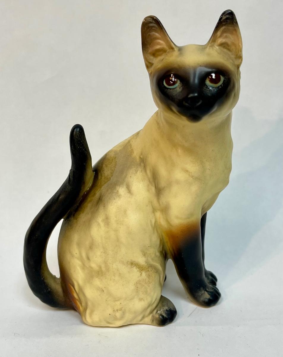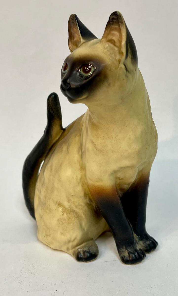 Porcelain Siamese Cat Figurine Sitting with Tail up Lefton?
