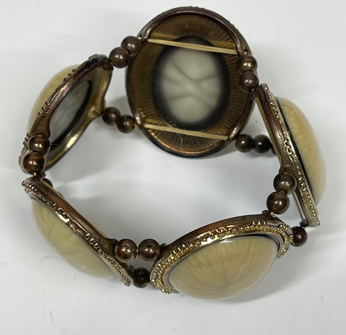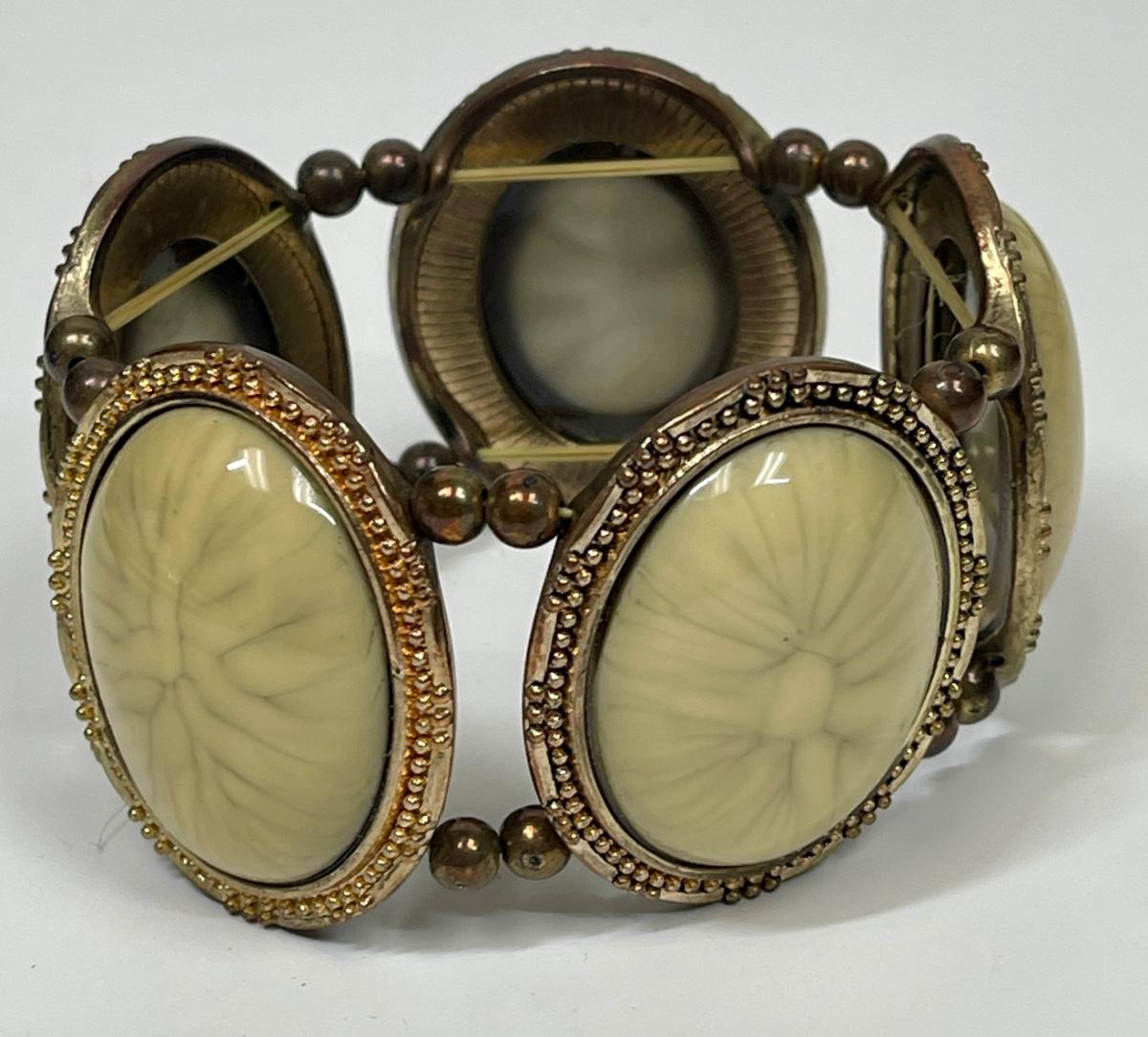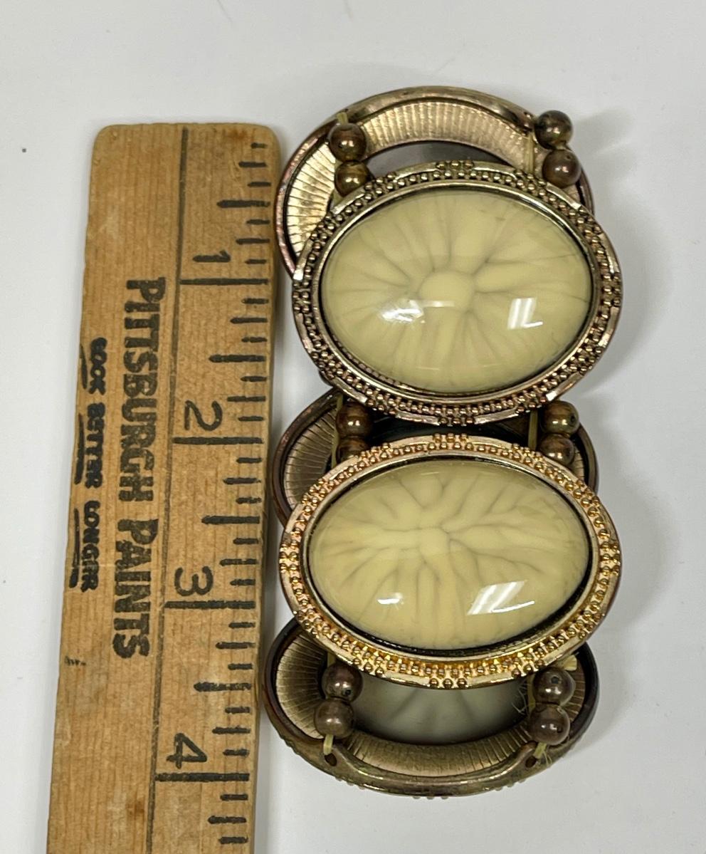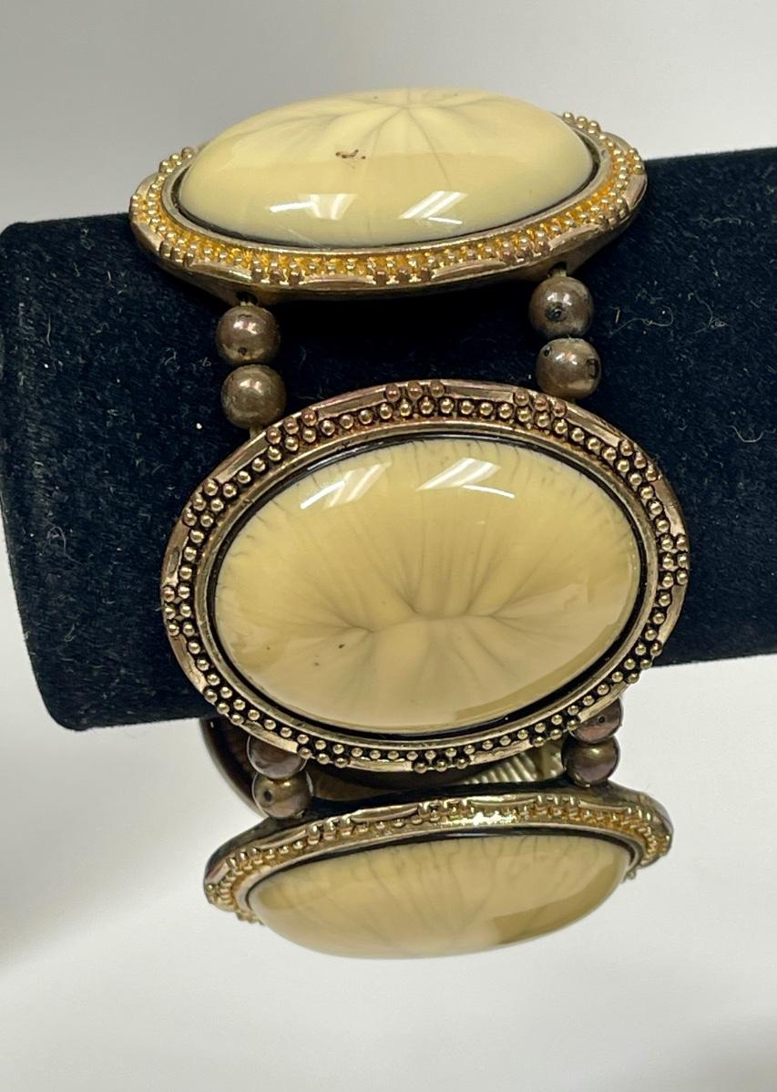 Vintage Costume Jewelry Stretch Bracelet Brass tone with large oval stones