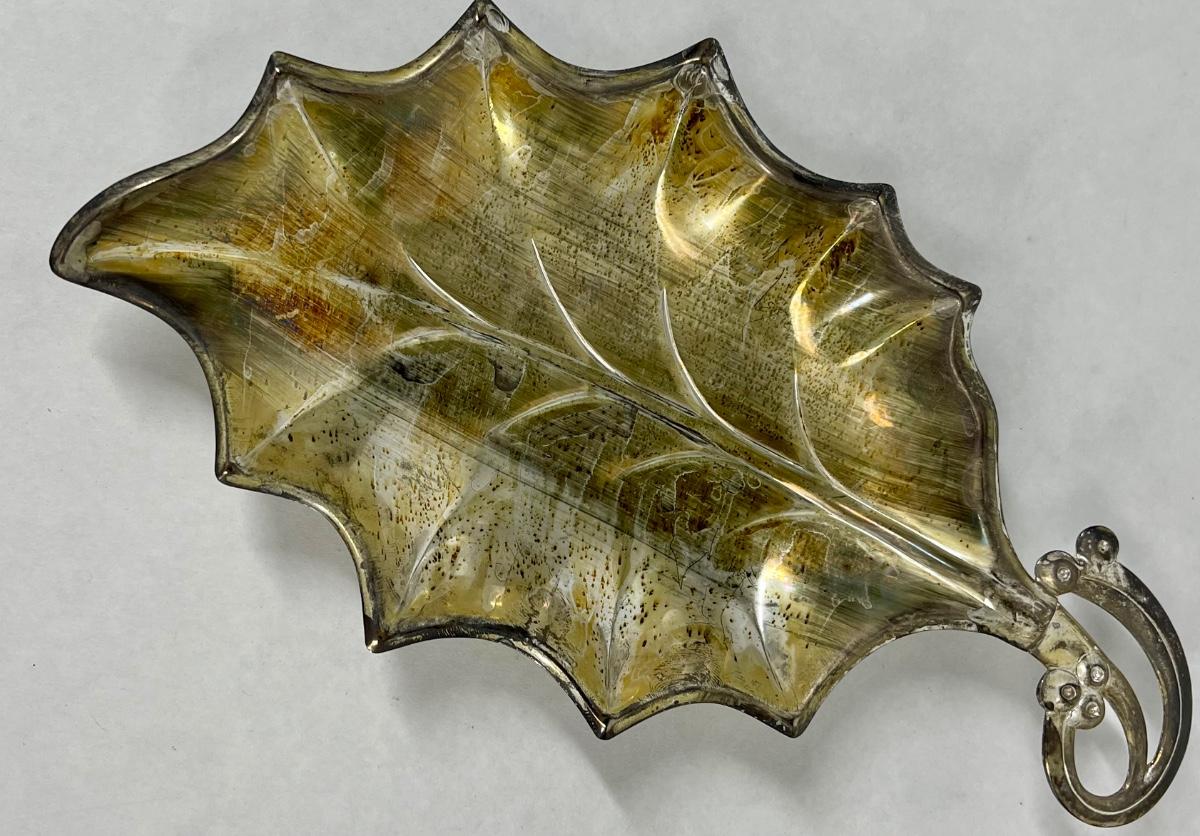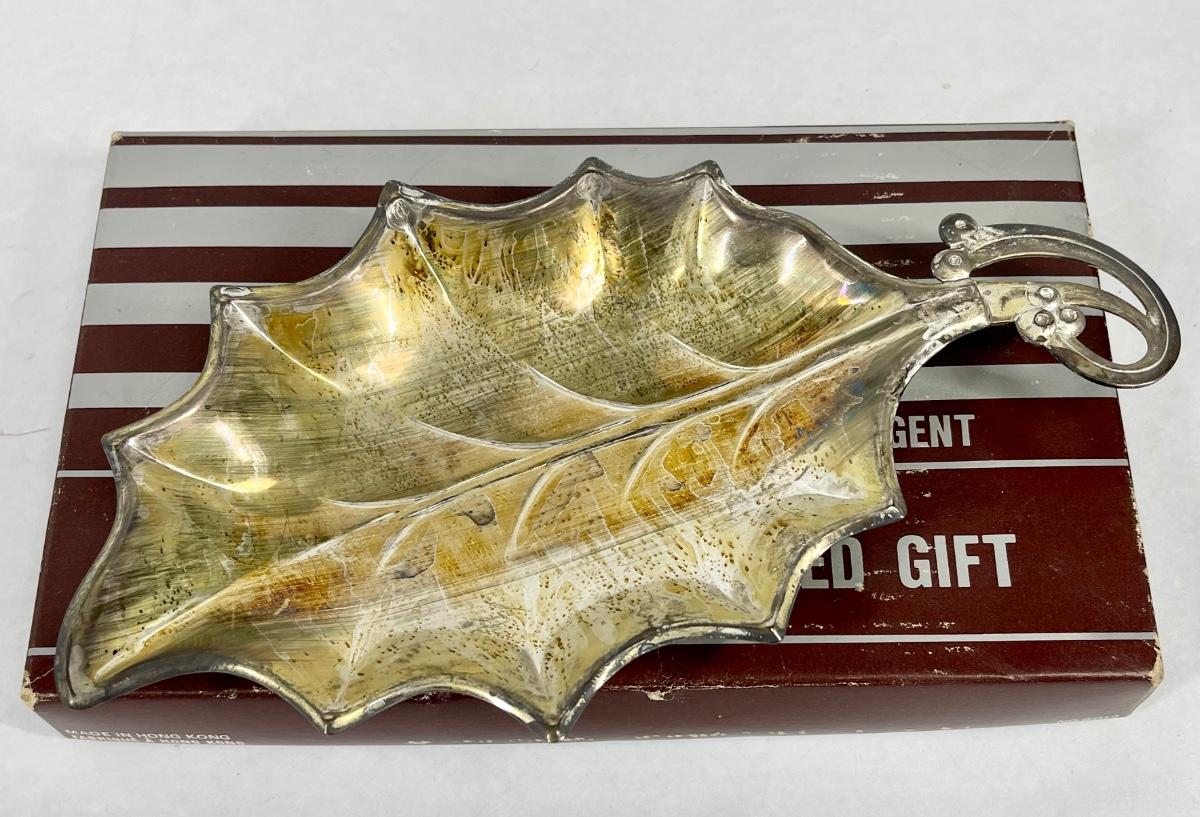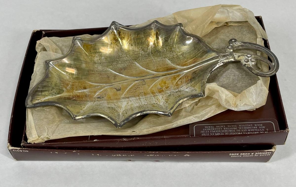 Silver Plated Leaf Shaped Dish Vintage made in Hong Kong comes with original box