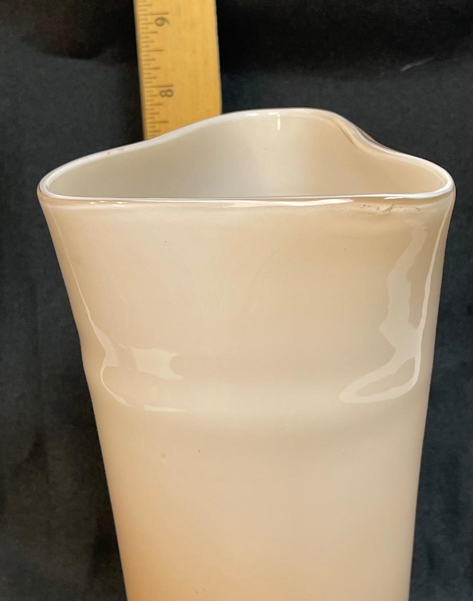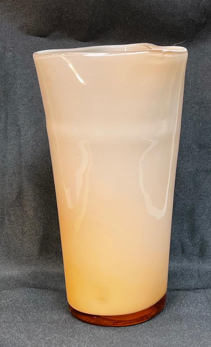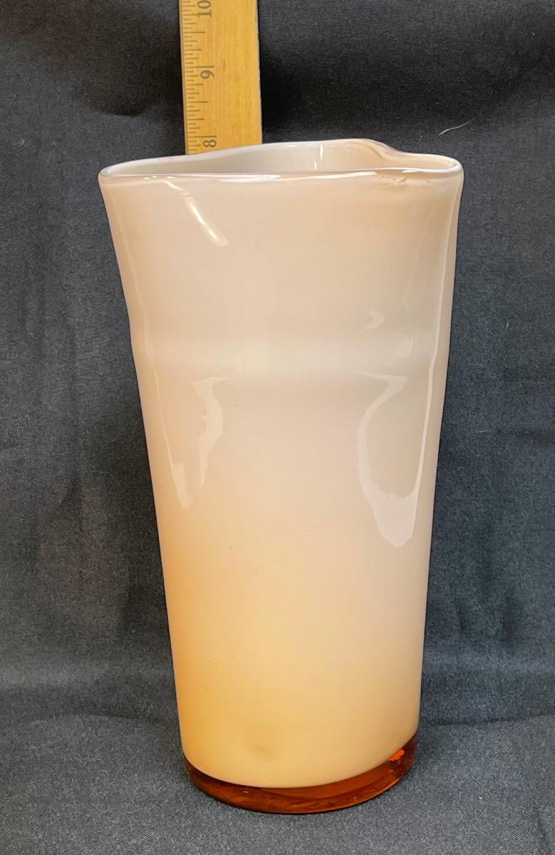 Vintage Blown Glass Vase Peachy Orange Pink Irregular shaped Art Glass