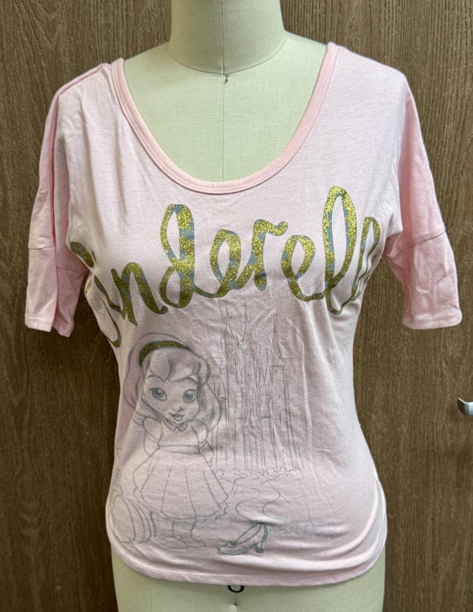Women’s Pink T-shirt with Lattice Back, scoop neck, short sleeve, gold lettering, size XS extra samall