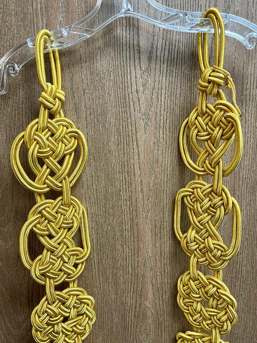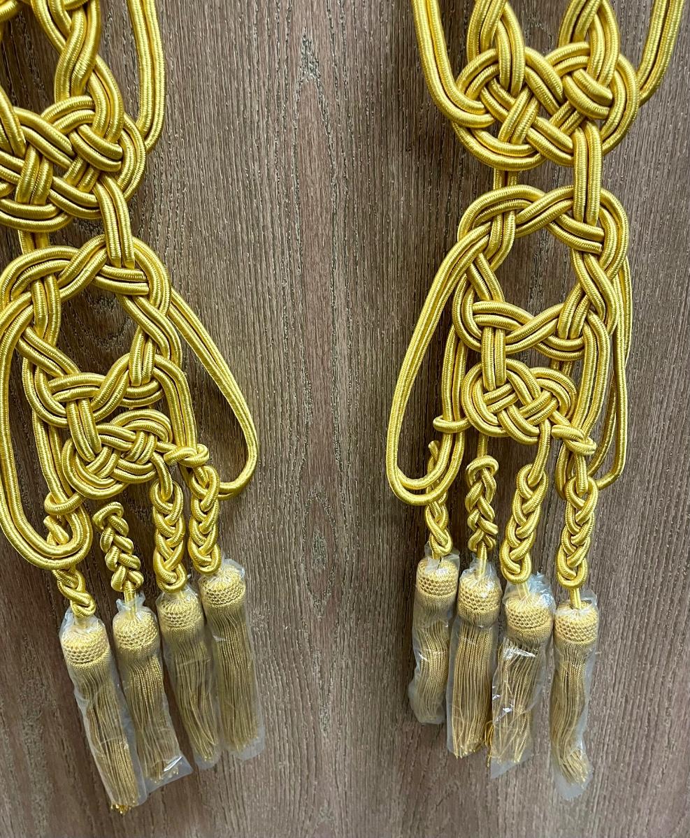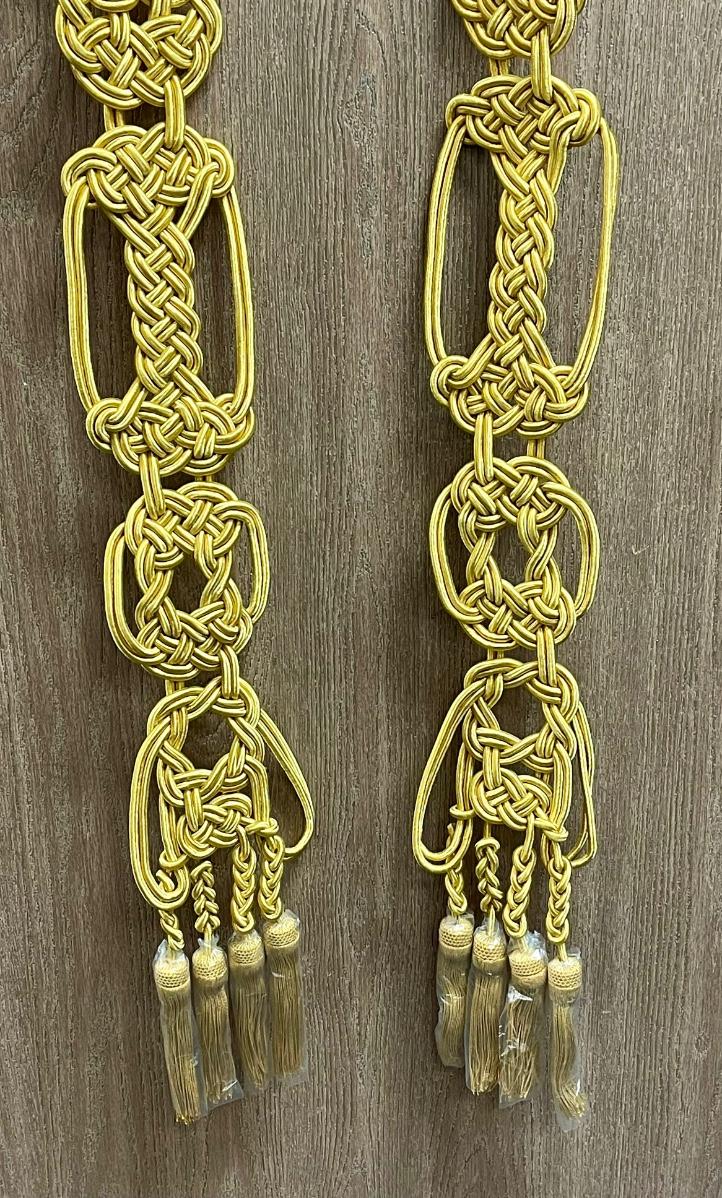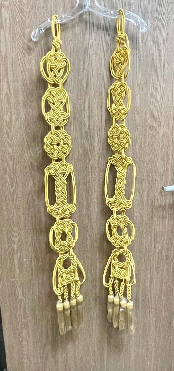Lot of 2 Very Large Vintage Gold Thread Macrame Japanese Temple Tassels