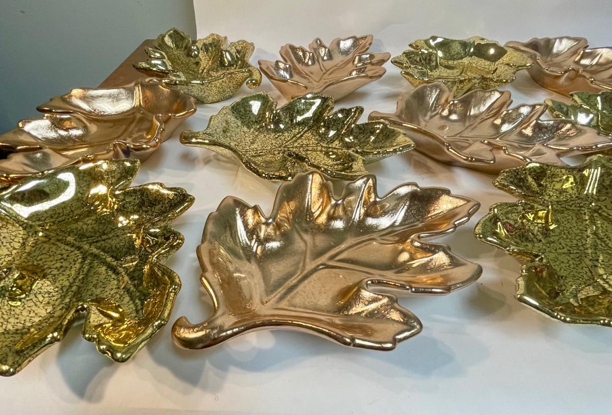 Ceramic Pottery Leaf Shaped Serving Dishes 14 pcs
