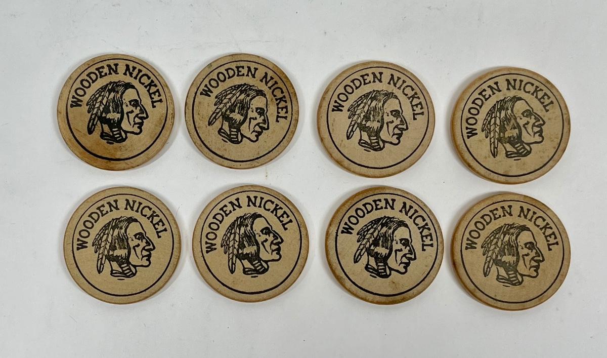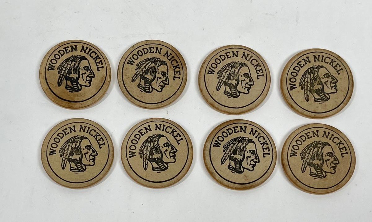 LOT of 8 Wooden Nickels Manning's Cafeteria California