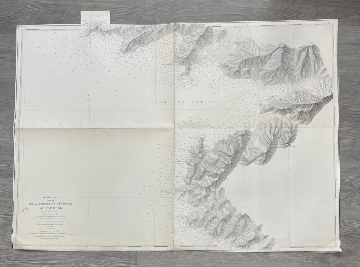 Description: DE LA POINTE DE SENETOSE AU CAP MURO / GOLFE DE VALINCO Carte levee en 1885Sous la direction de M. P. PHATT Ingrenieur Hydrographe / SERVICE HYDROGRAPHIQUE DE LA MARINEPARIS 1894 - Reproduction. Material: Paper Measurement approximate: 29" x 21” (Inches) Condition: Good