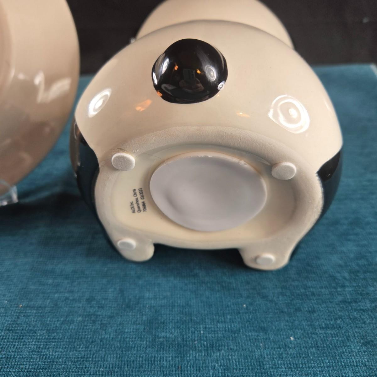This auction lot is for a Dear God Child's Plate and Panda Bank. The Plate says "Dear God, I just can't sleep want to talk?" Measuring about 8-inches in diameter the china plate is by Royal Norfolk. The ceramic Panda Bank is from China - it measures about 7-inches tall. Both items are in like new condition. Nice gifts for your favorite young one.