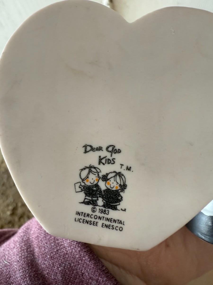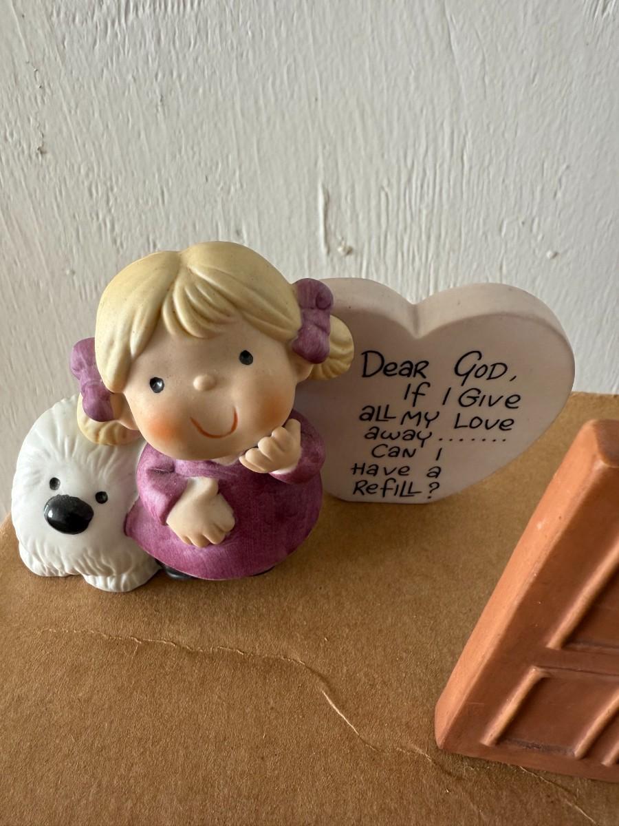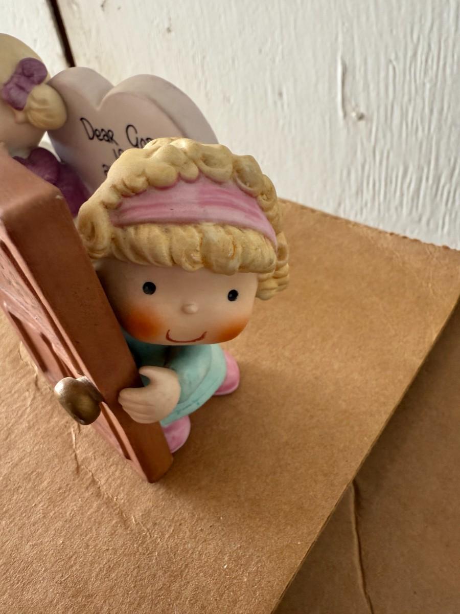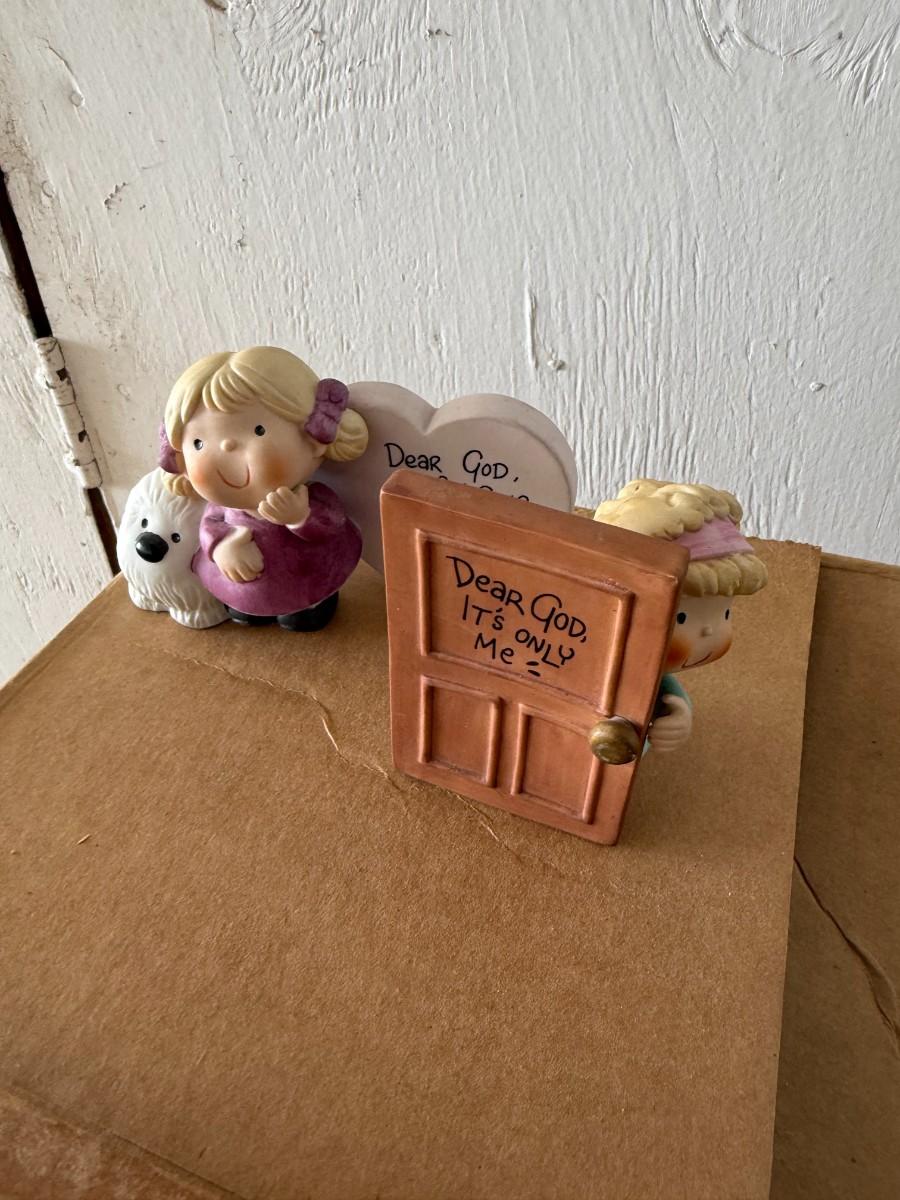 Dear God Kids Figure "It's Only Me": This heartfelt figurine from 1982 features a girl behind a door, showcasing the innocence and curiosity of childhood. A thoughtful decorative piece for any home.