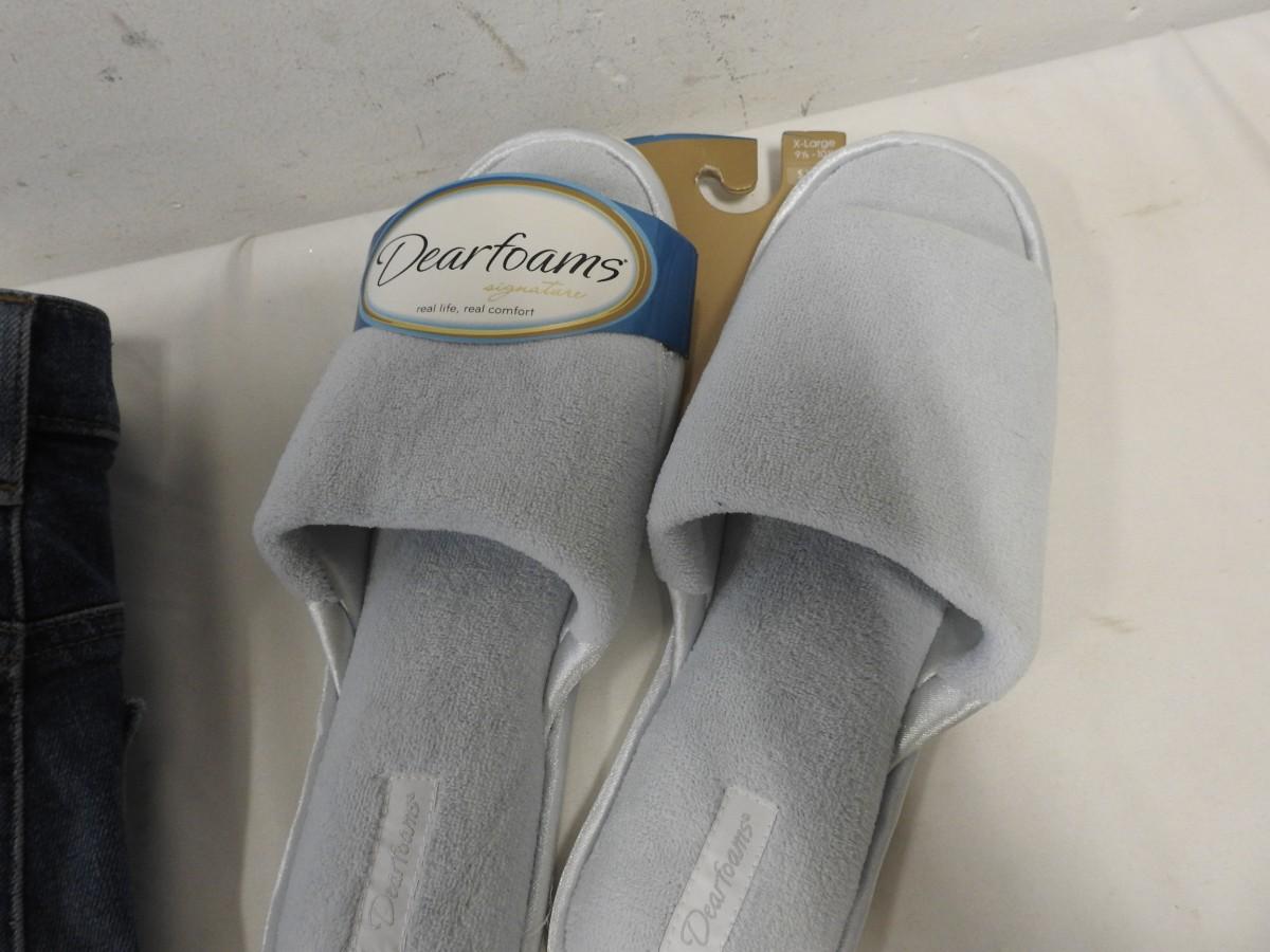 Dearfoams Signature Slippers, Loft High Waist Skinny 27 Size 4 Jeans, Seint Hat - New