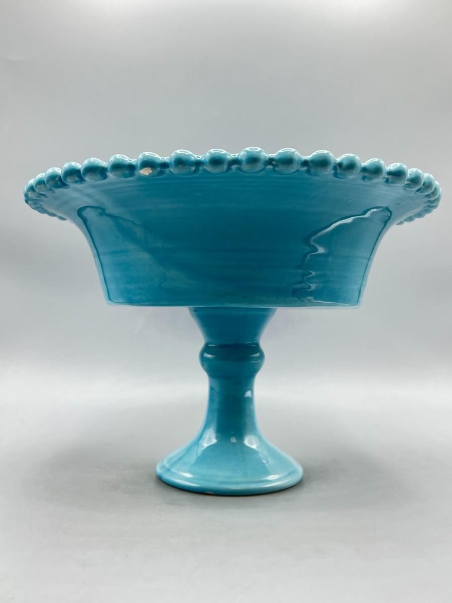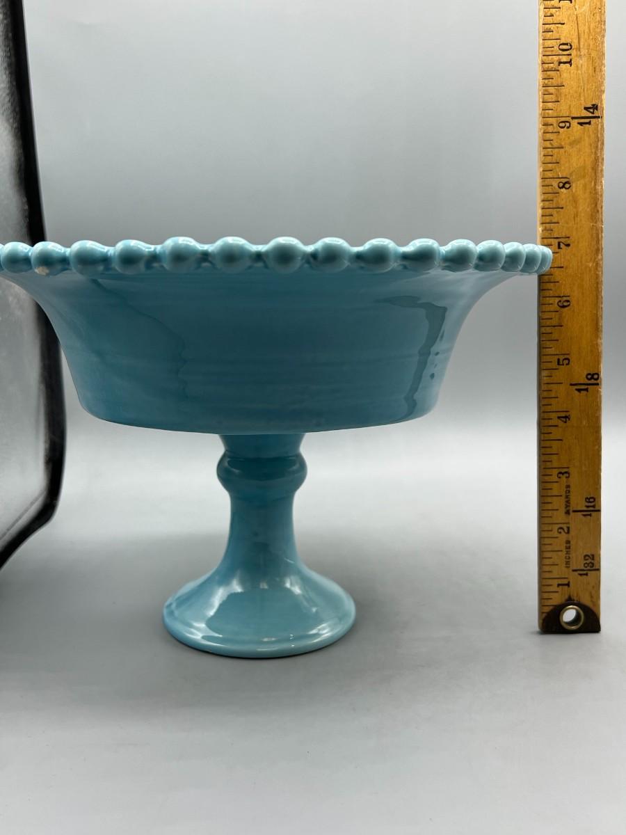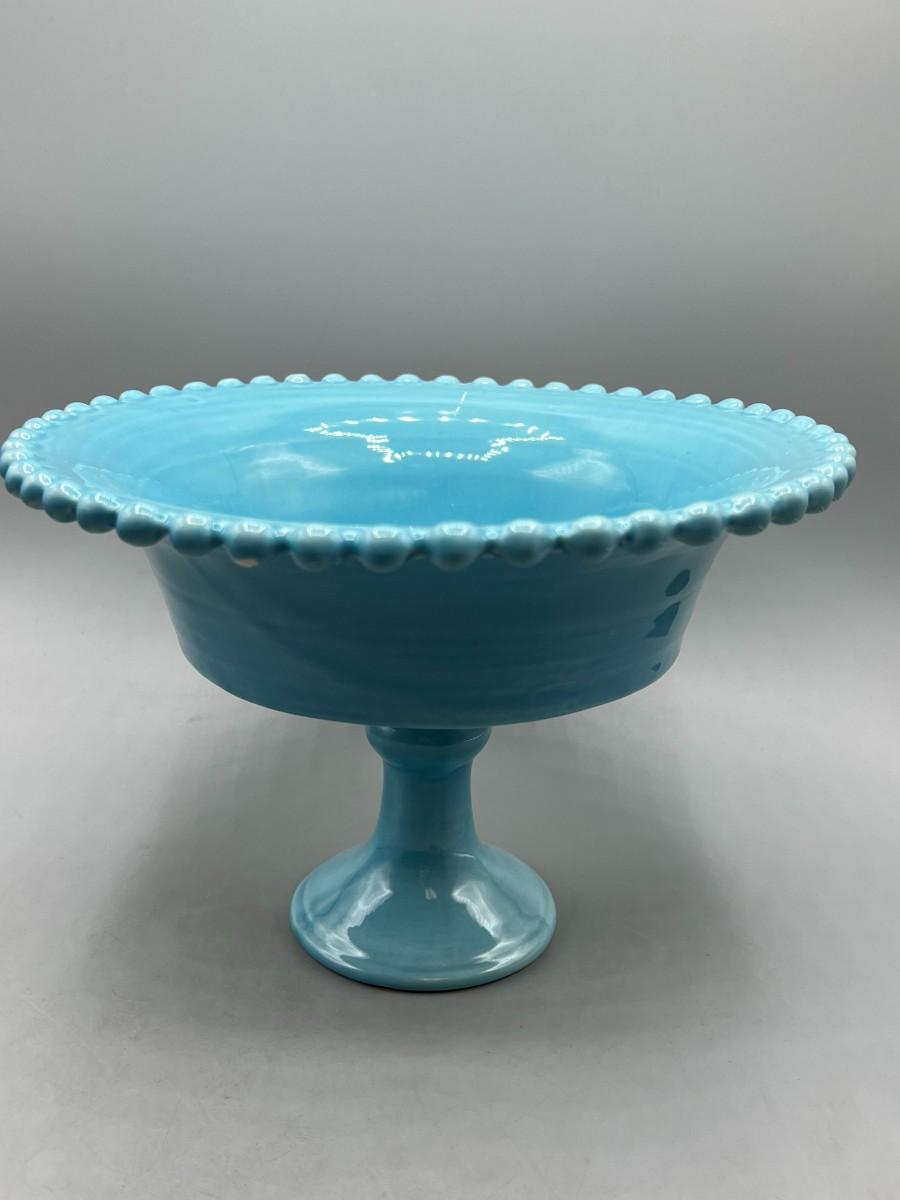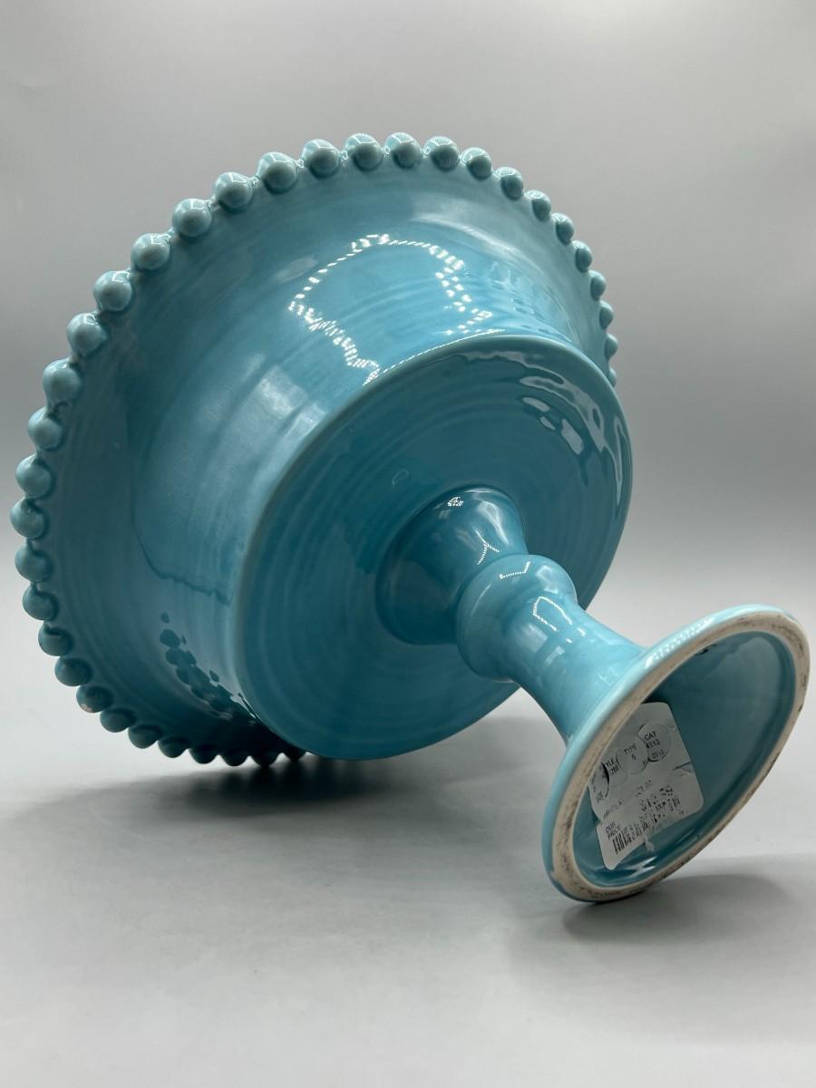 Deartis Turquoise Blue Ceramic Pedestal Candy Dish Compote Candle Holder