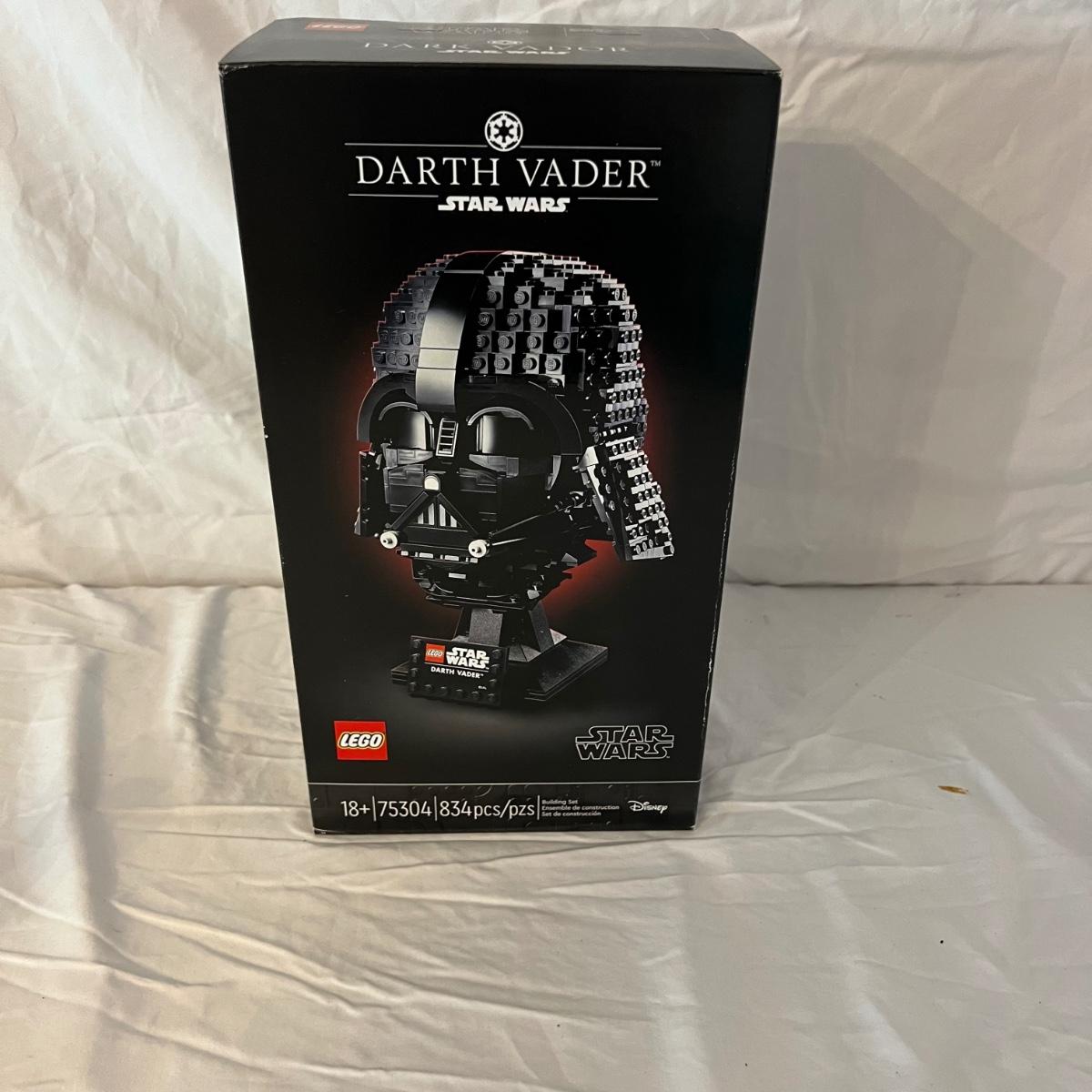 A Darth Vader LEGO set. The box is taped shut and unopened. It is 834 pieces.
