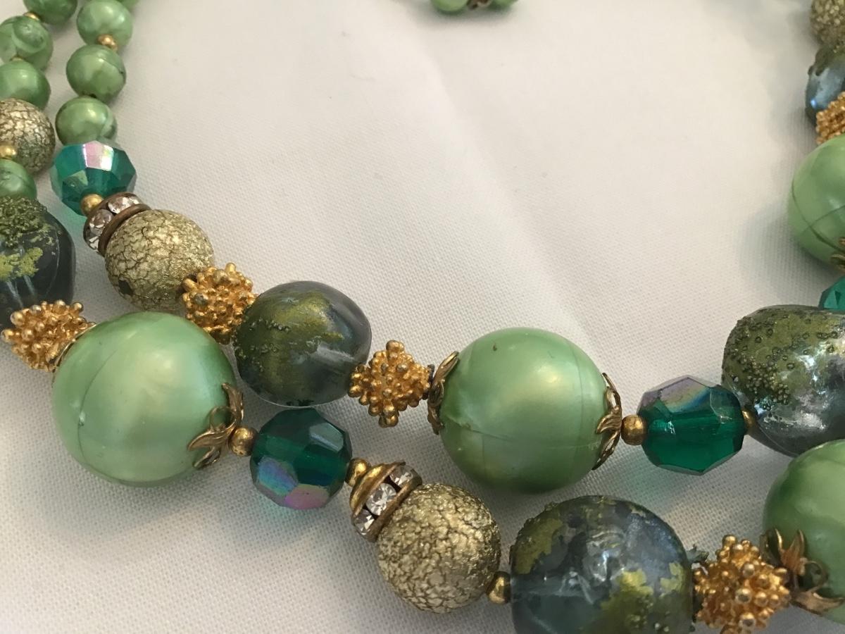 Deauville 1960 Signed Shades of Green Crystal Matching Earrings