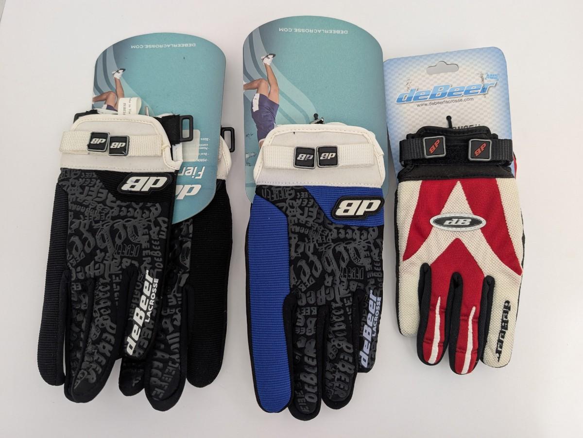 DeBeer, lacrosse gloves, sports gear, new old stock, athletic equipment, adjustable gloves, grip gloves, lacrosse accessories, sporting goods, NOS
