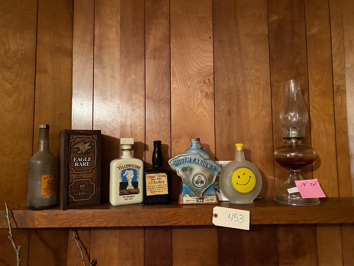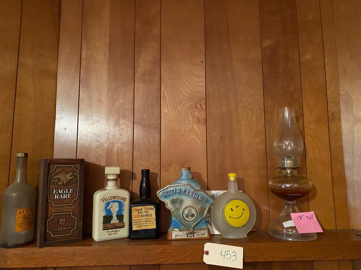 LOT 453 Misc Vintage Empty Decanters and an Oil Lamp