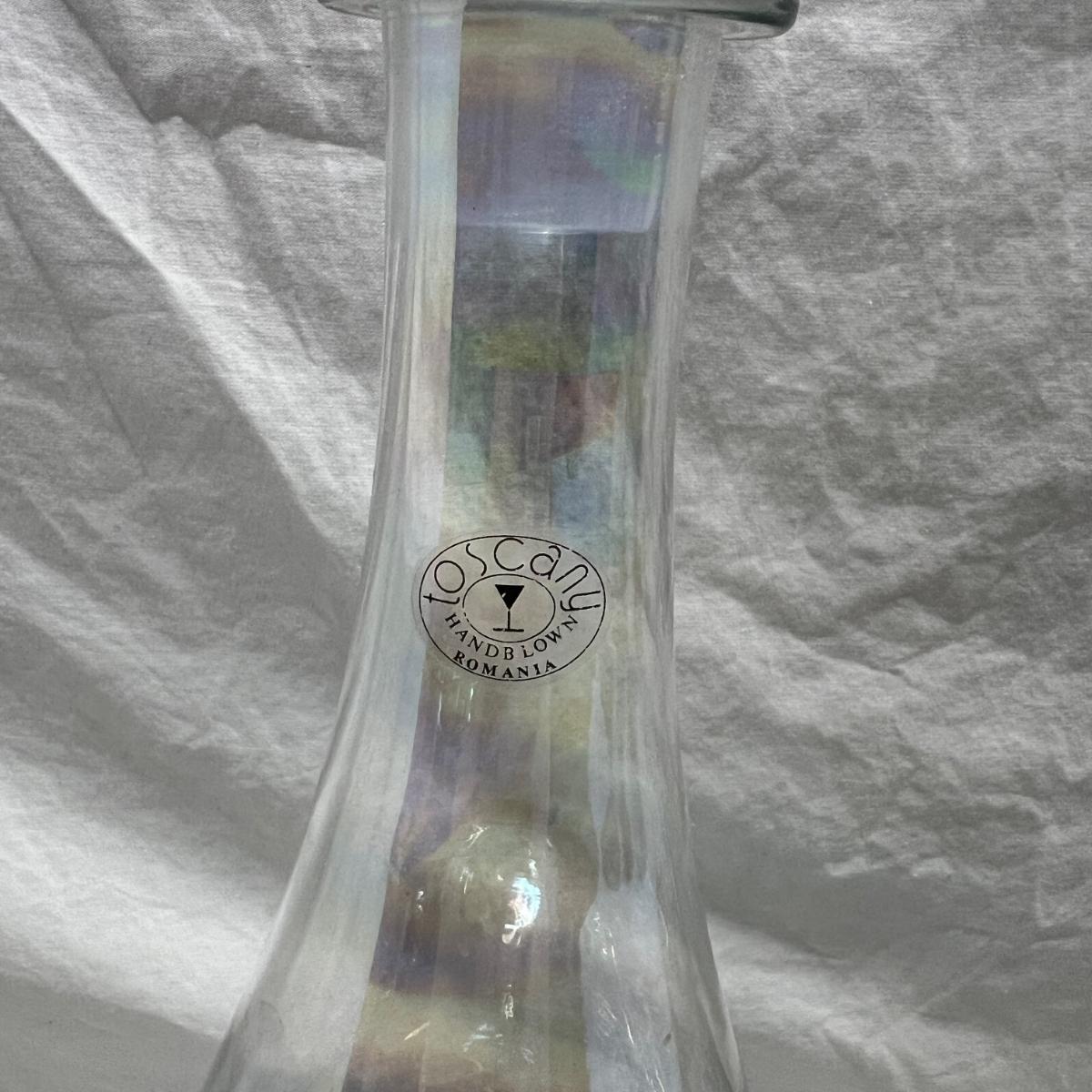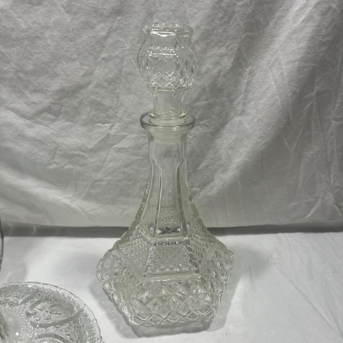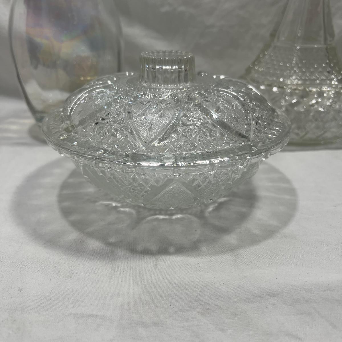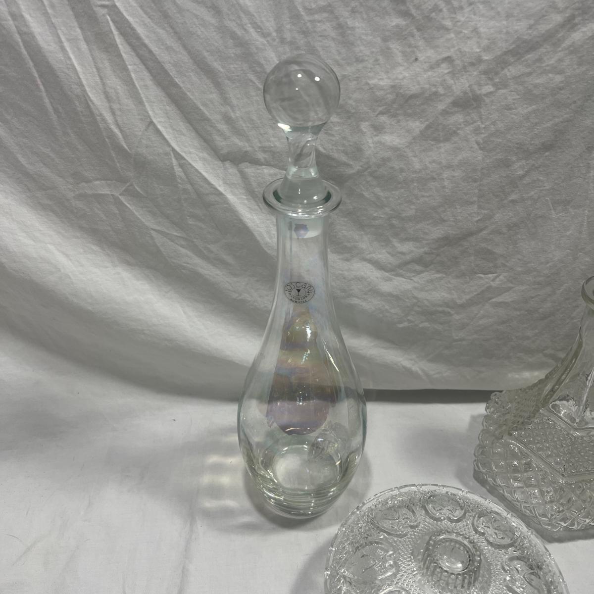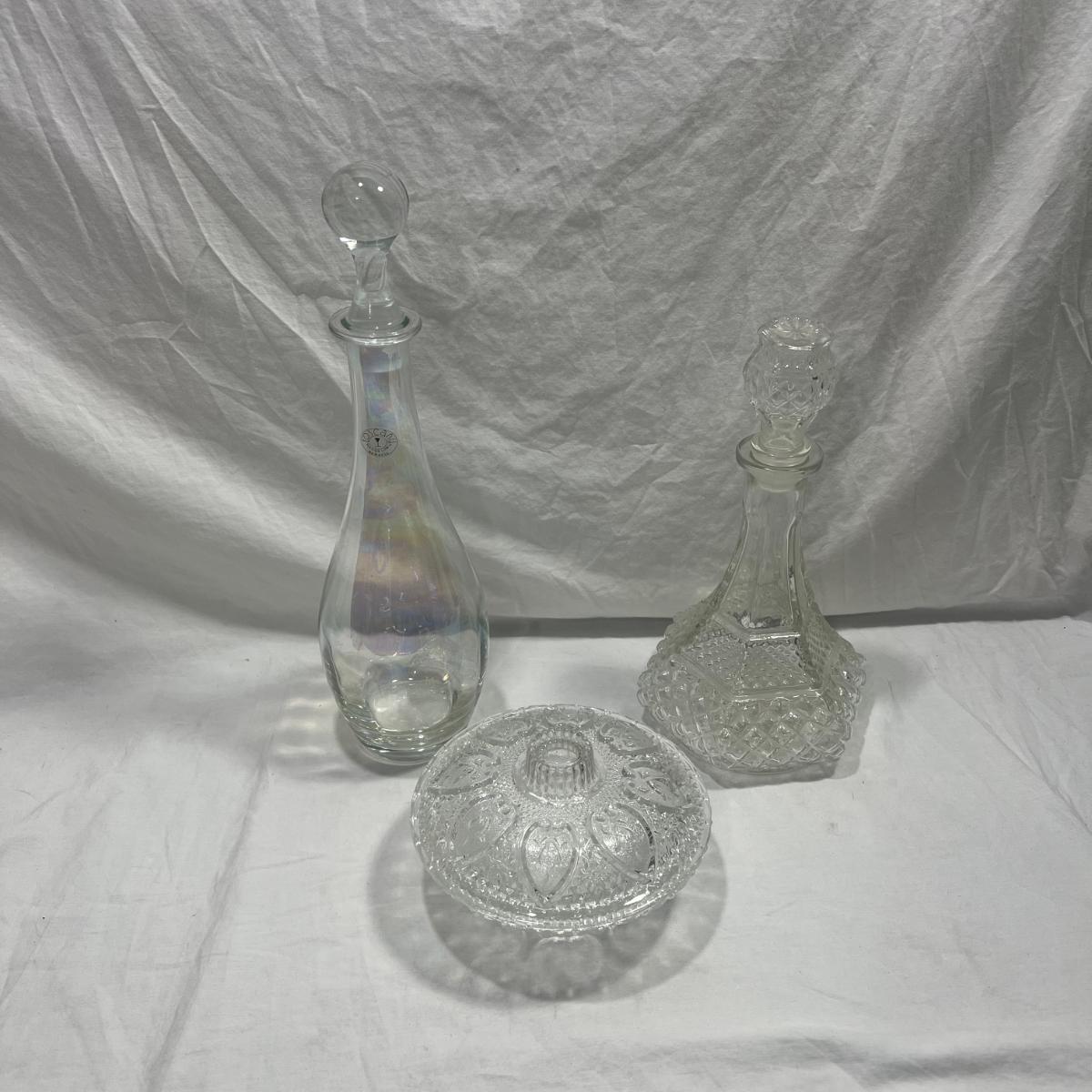 Hand blown crystal decanter and a glass decanter as well as a glass candy dish with lid