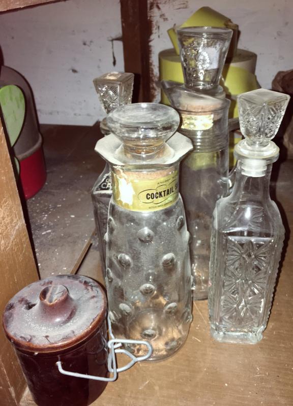 Misc Decanters, Bottles and Crocks - Basement/Garage Item so may need cleaning