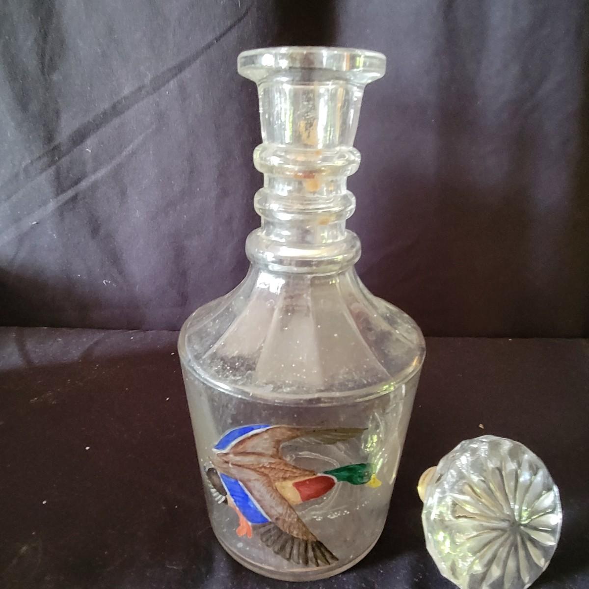 Decanter with duck painted on front has a bit of residue inside.