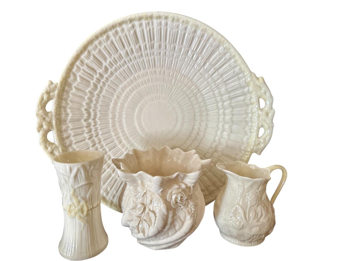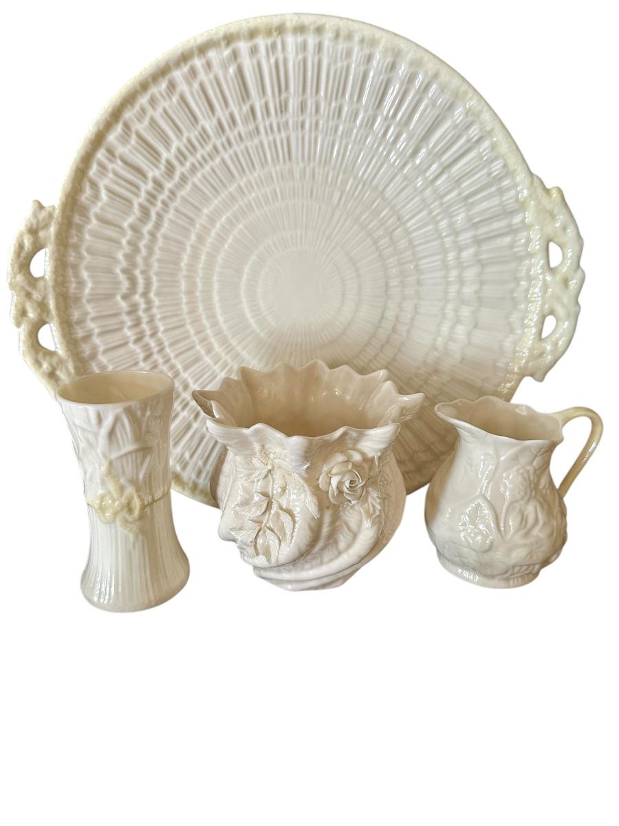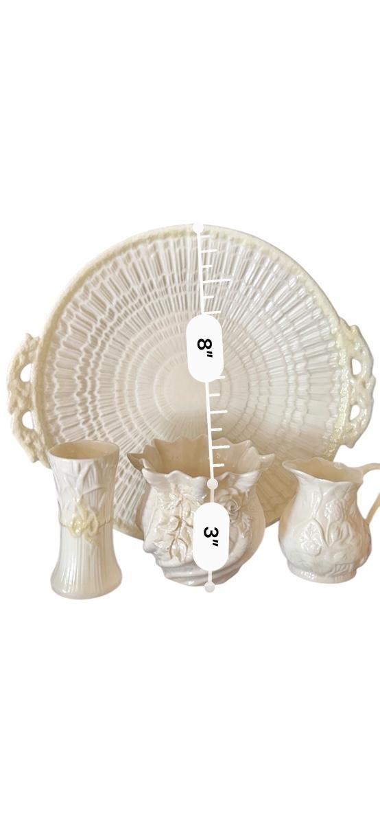 Decor - Beeleek 4 piece lot w/ green marks -chips on 2 small pieces