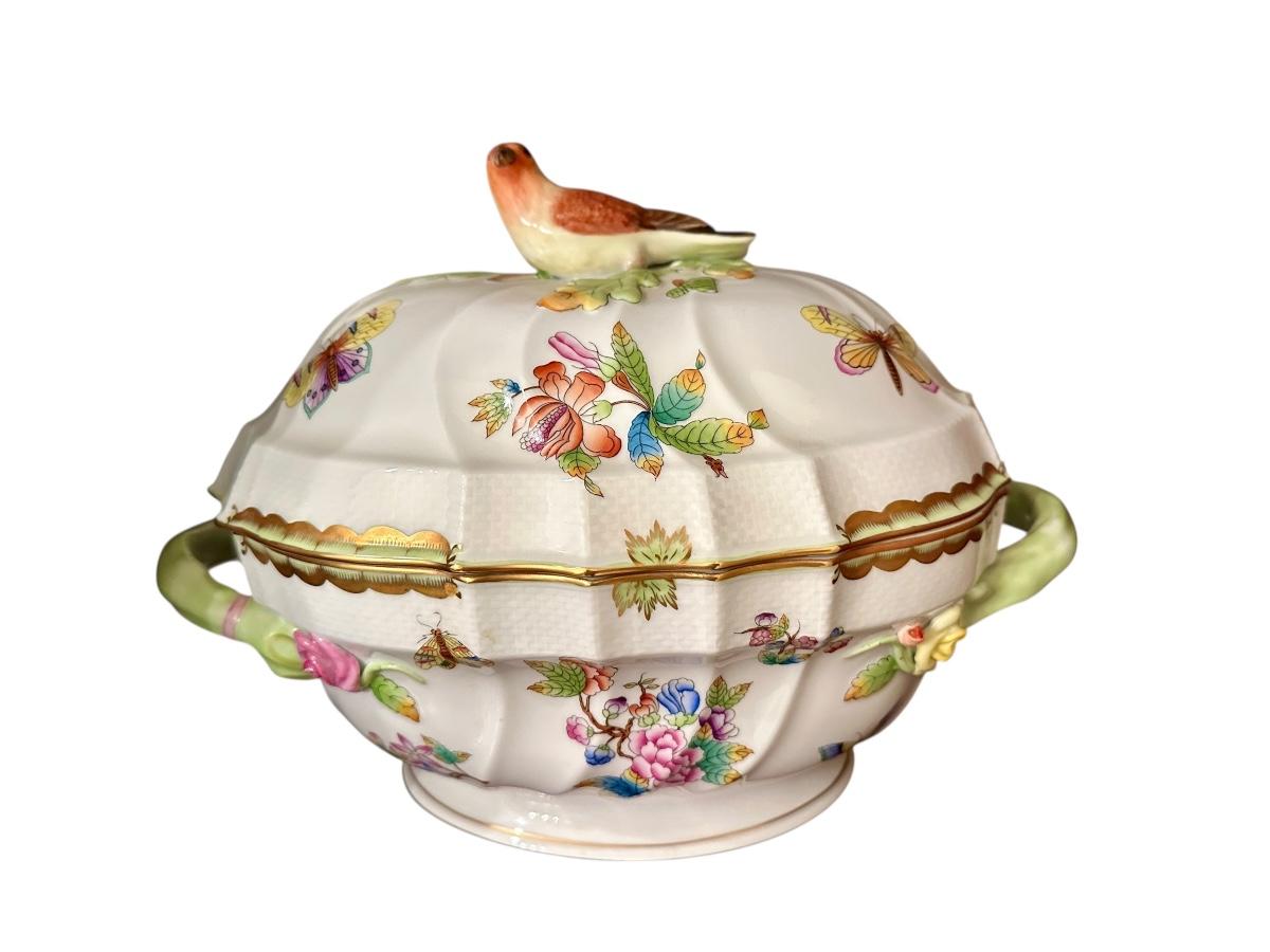 Decor - China - Herend Tureen Queen Elizabeth Pattern with Rare Bird finial Platter listed separately