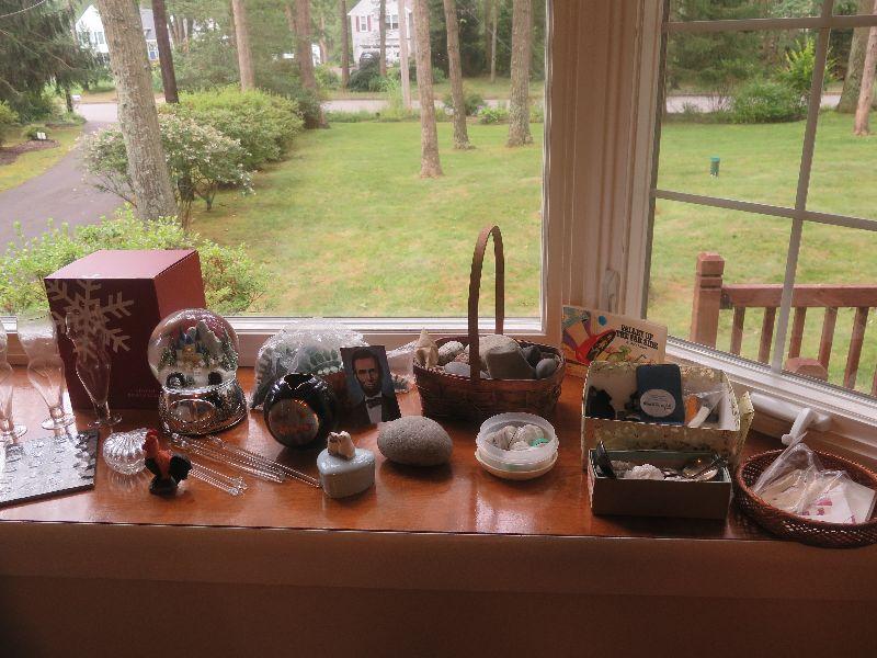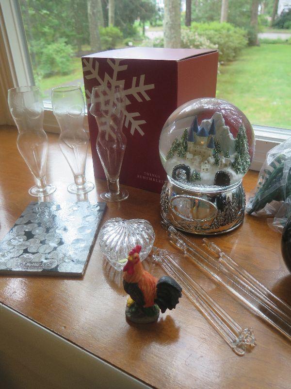 Things Remembered music globe, crystal drink stirrers, toy dinosaurs, switch plate covers, contact lens holders and more. Bring box for removing.