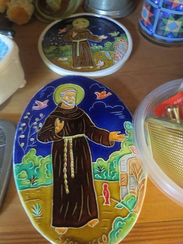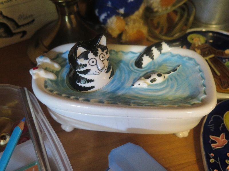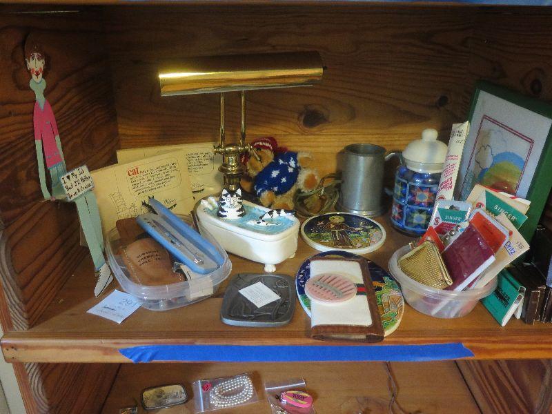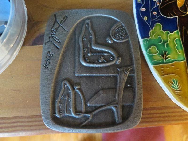 Wall art, desk lamp, plaques made in Italy, cat trinket box, Dali metal trivet, and more. Bring box to remove.