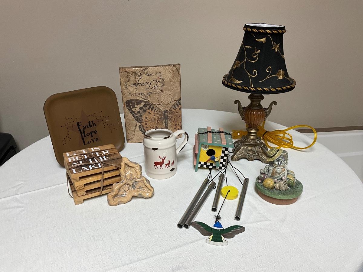 Decor, little lamp, lake coasters, bird wind chime butterfly decor