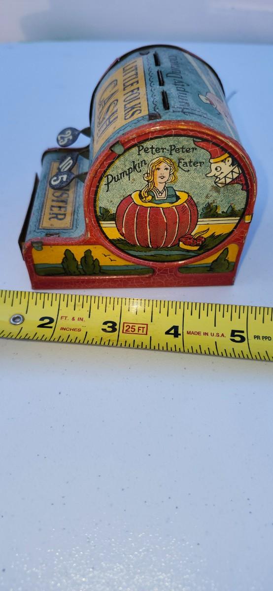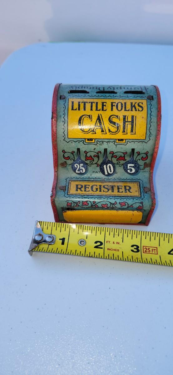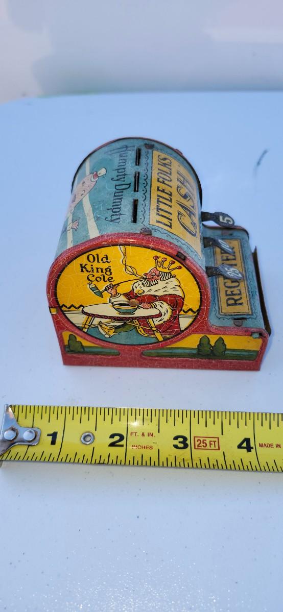 Antique Tin Litho Little Folks Cash Register Tin Toy Nursery Rhymes Gropper Coin