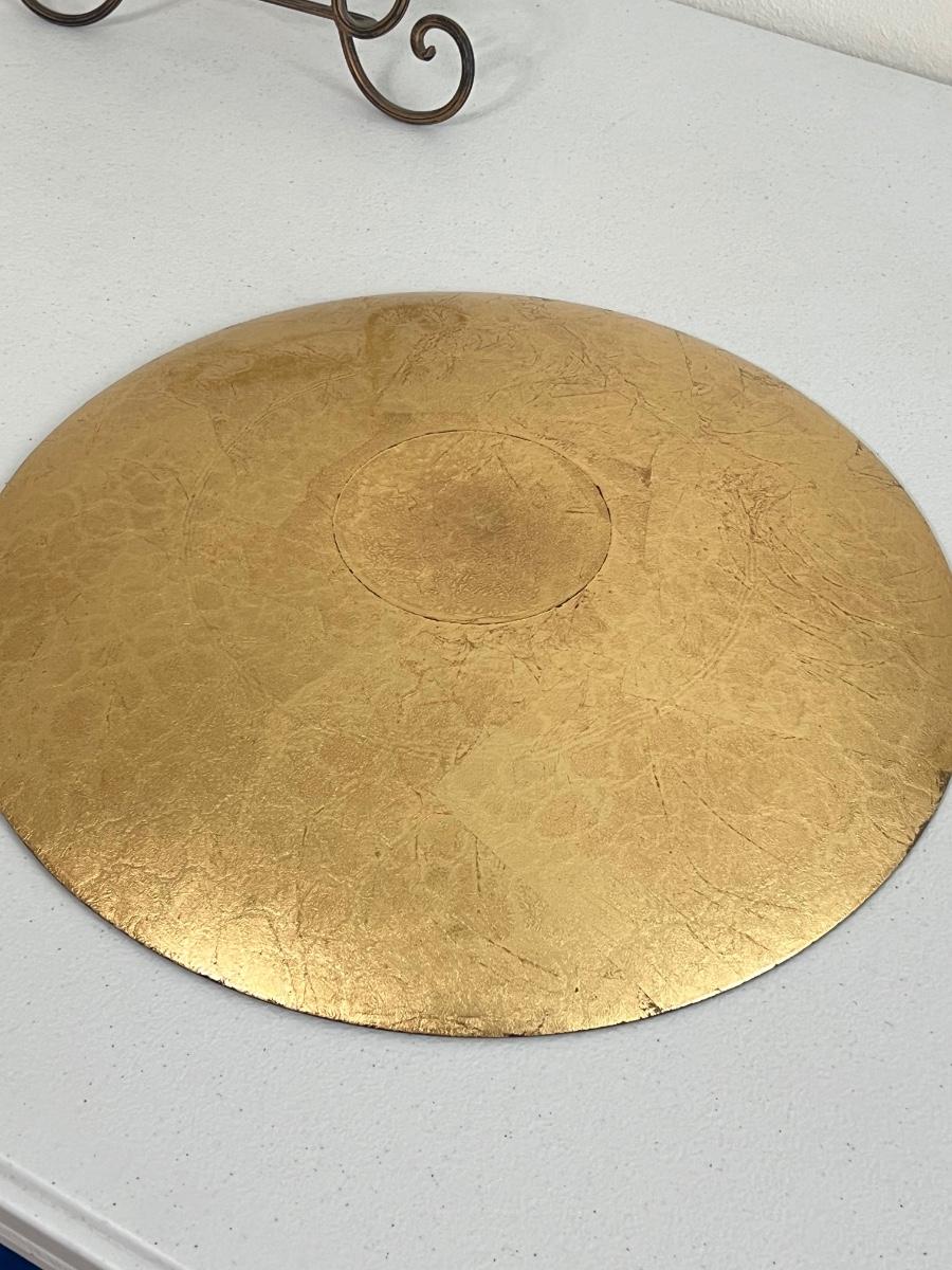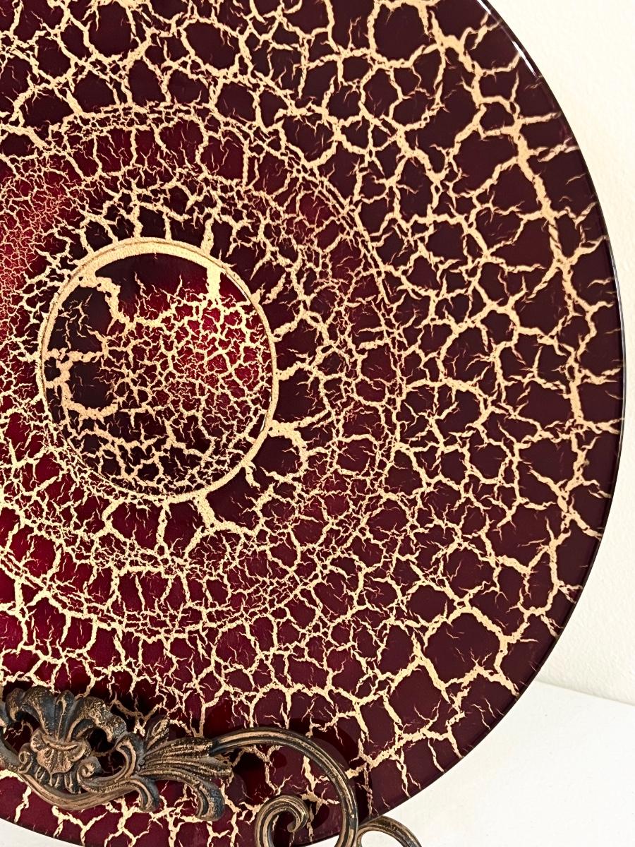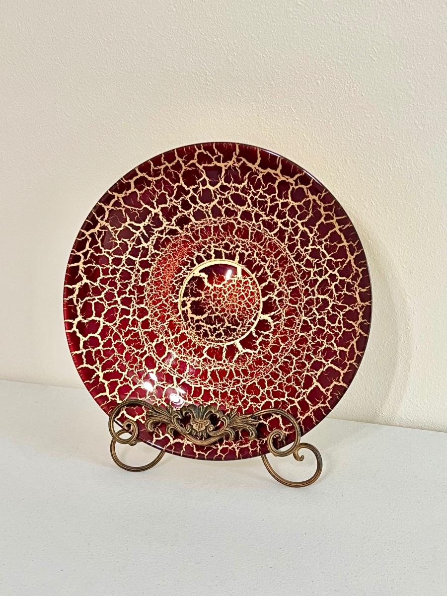 Includes stand ~ On stand plate = 16” H ~ plate = 15.5” Round