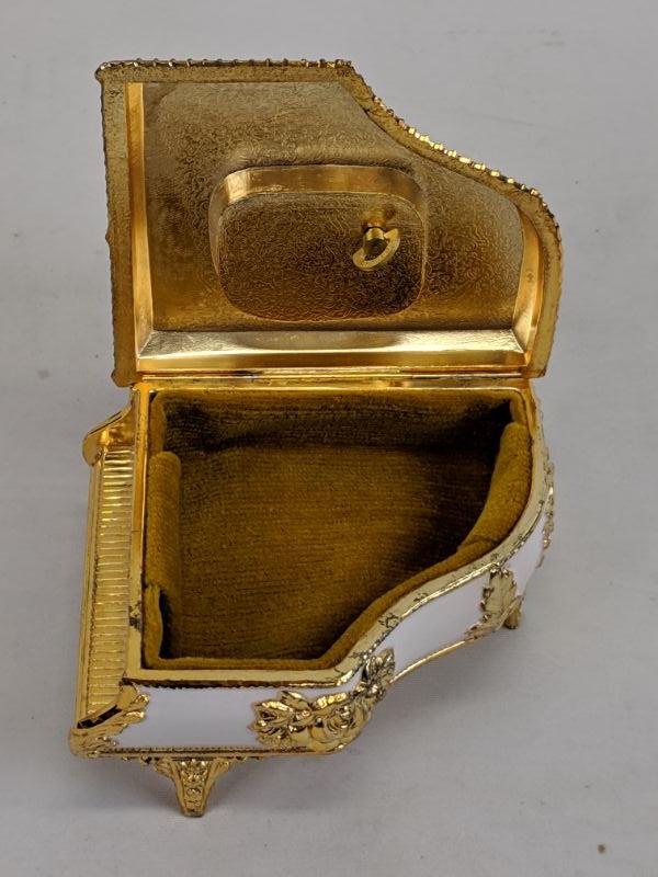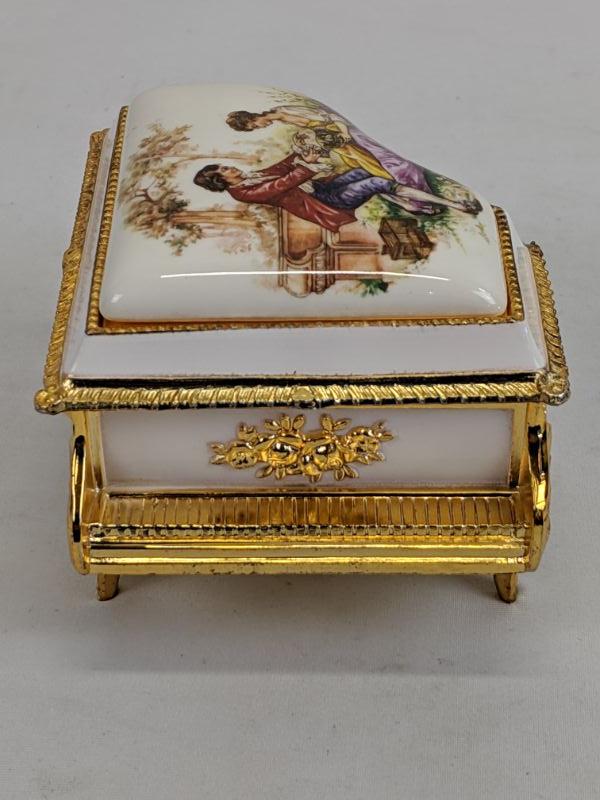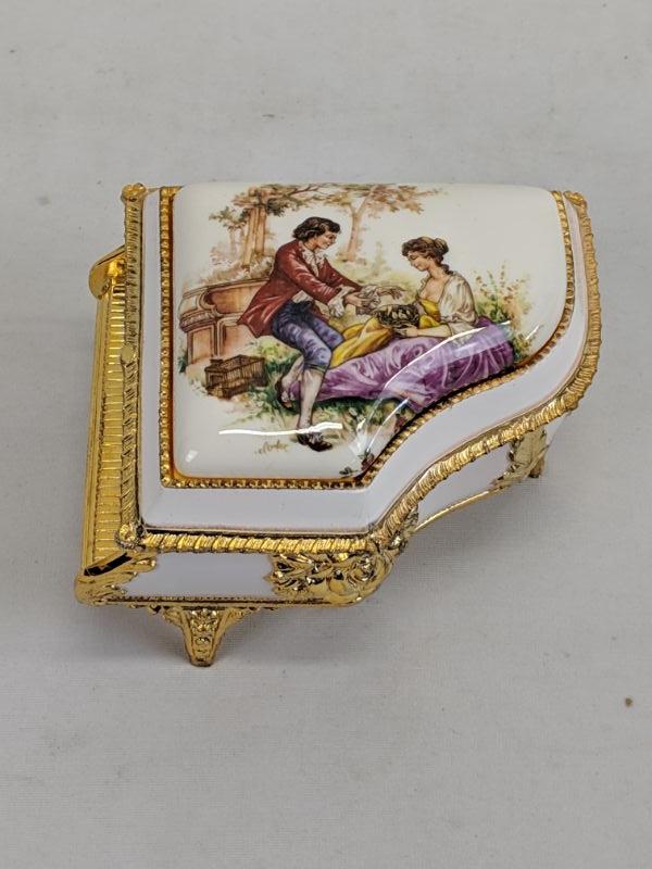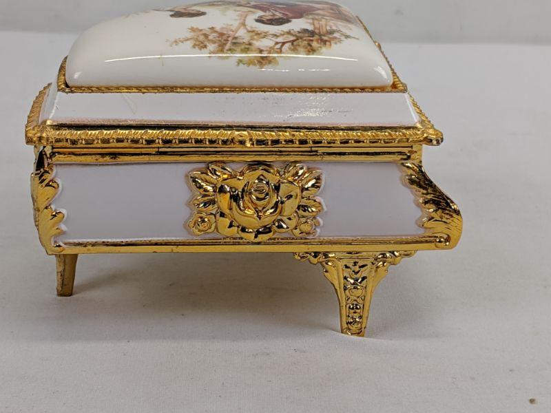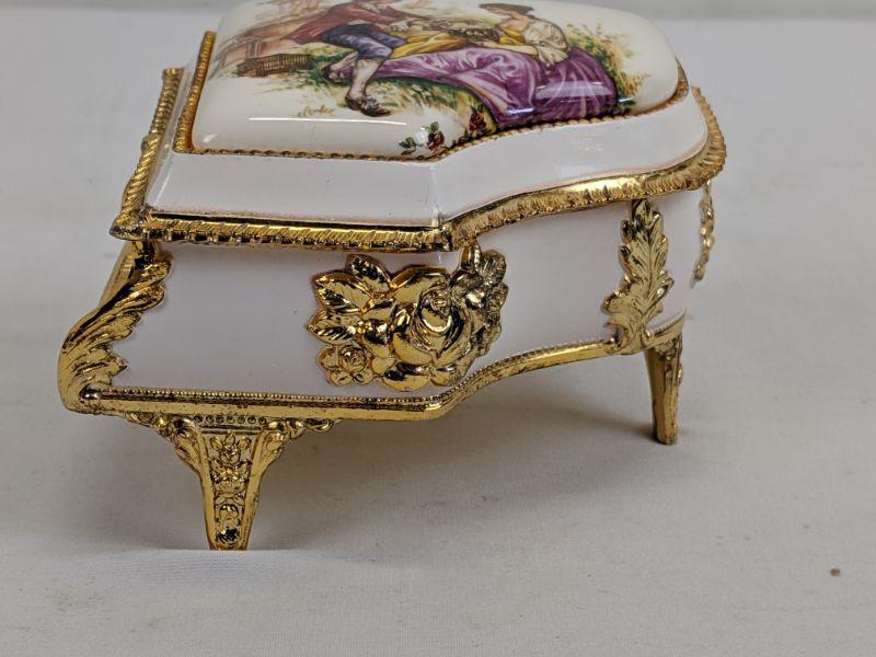 Decorated Antimony Musical Jewelry Box. Tested, works. Music unknown.