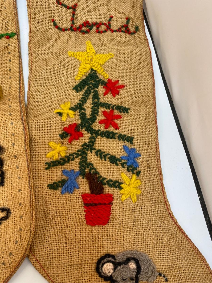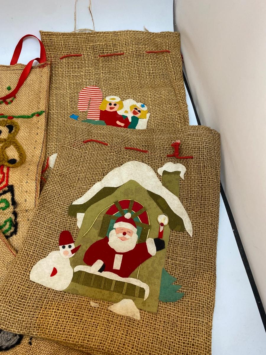 Decorated Burlap Christmas Holiday Stockings and Gift Bags