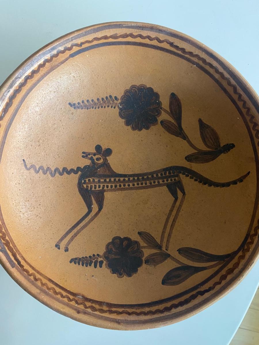 Decorated figural clay platter