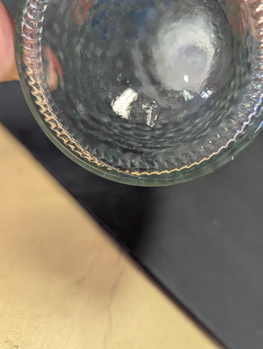 2 & 7 on the bottom. Small imperfection on the tip of one stopper