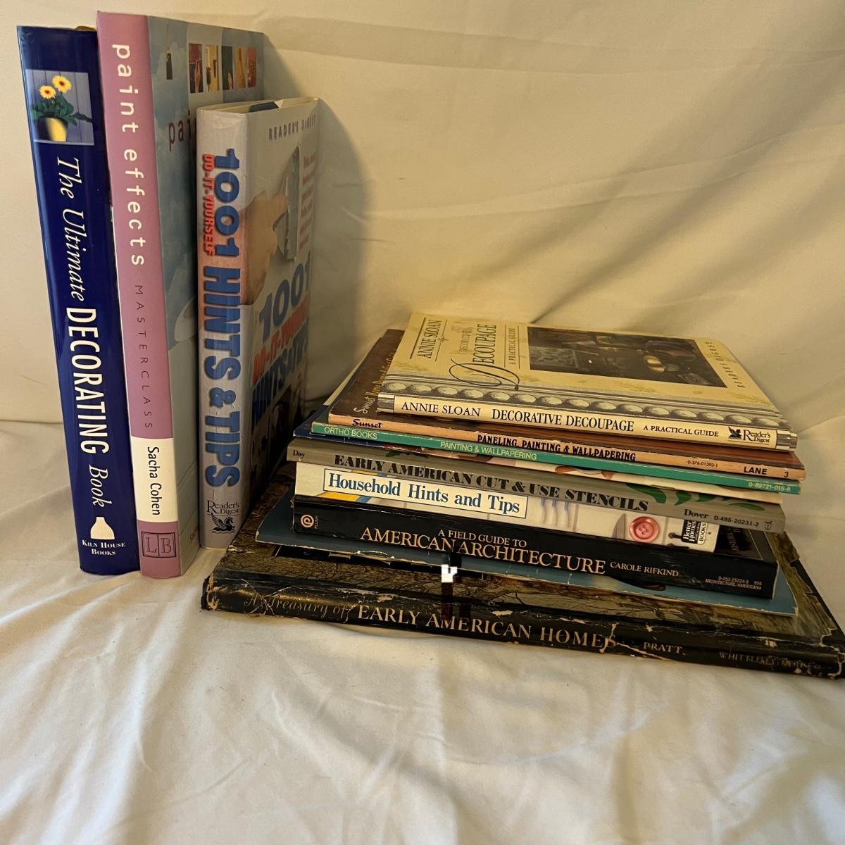 A varied collection of over 10 home decorating books and architecture books. See images for details.