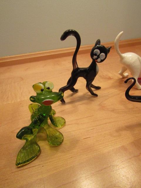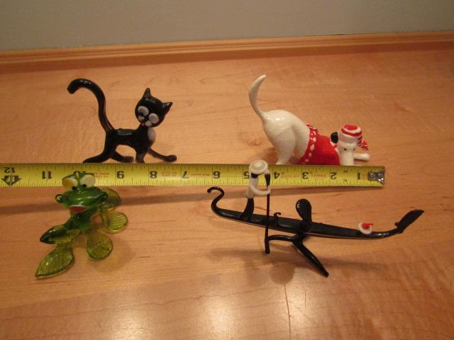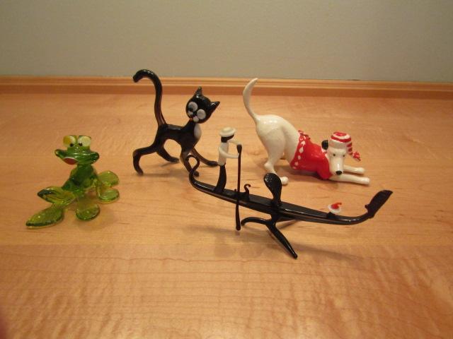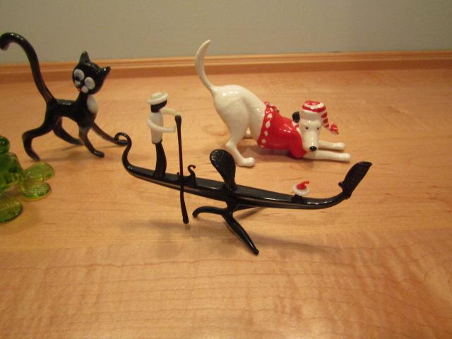 Decorative Accents- Three Art Glass Pieces and Playful Dog Ornament
