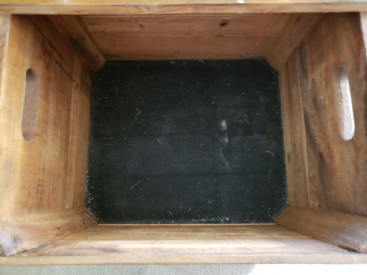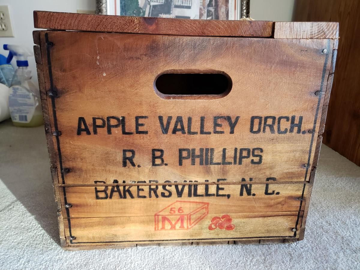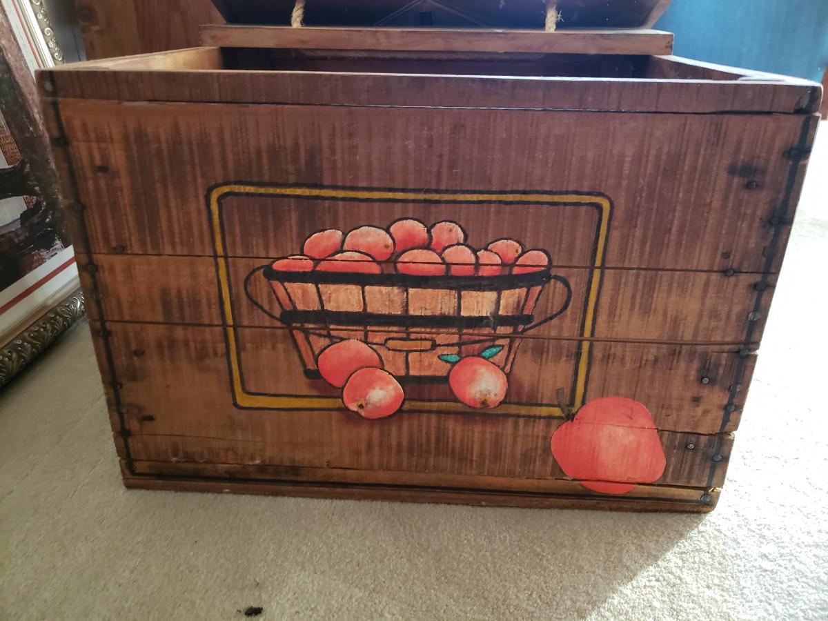 This apple box makes a great decorative piece as well as provide extra storage. Perfect size to set next to the fireplace and store kindling in it. See pictures for more details.