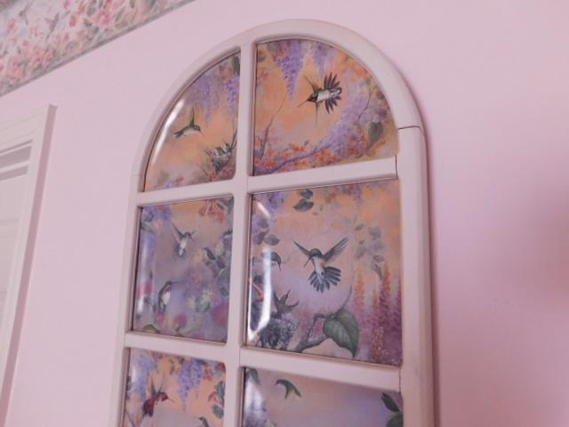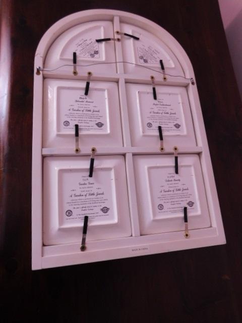 Decorative Arch Window Bradford Exchange Collector Plate Holder with A Garden of Little Jewels Plates 22"x14" one seam is a little separated