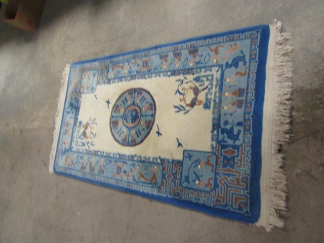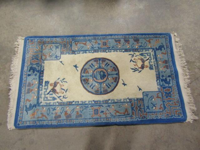 Decorative area rug with fringe. Very colorful. Measures approximately 36 inches by 68 inches.