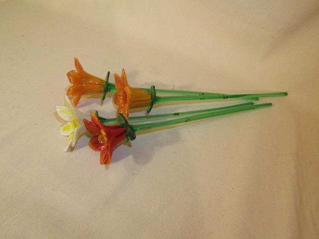 Decorative Art Glass Flowers- Approx. 19" Tall