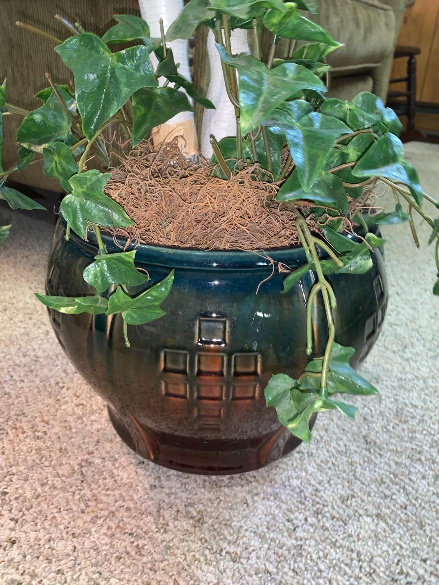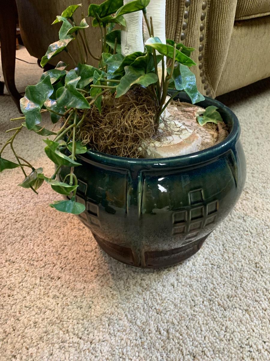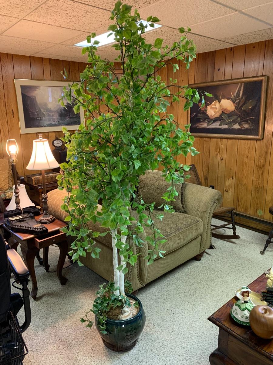 78" high artificial tree. This is 'rooted' in a very heavy ceramic pot. Both in excellent condition.