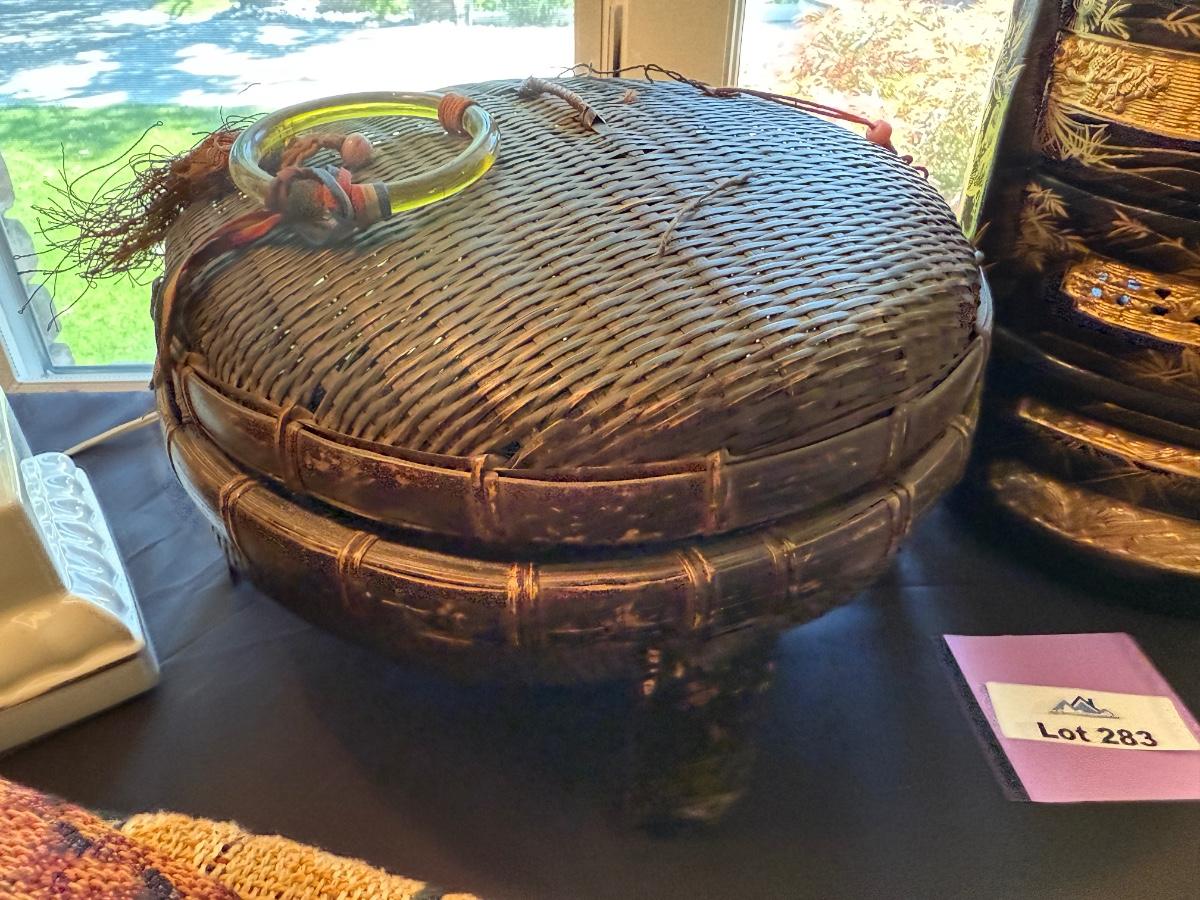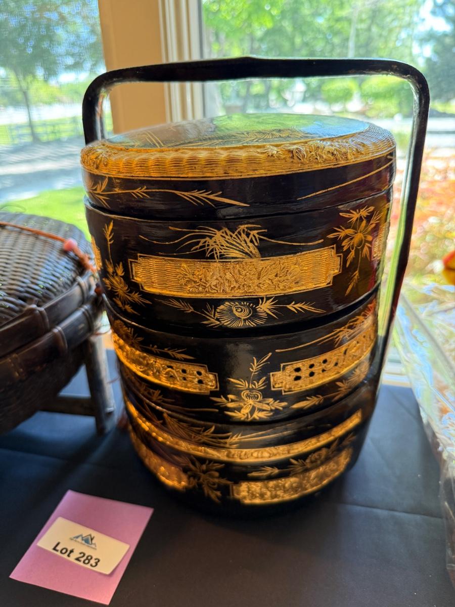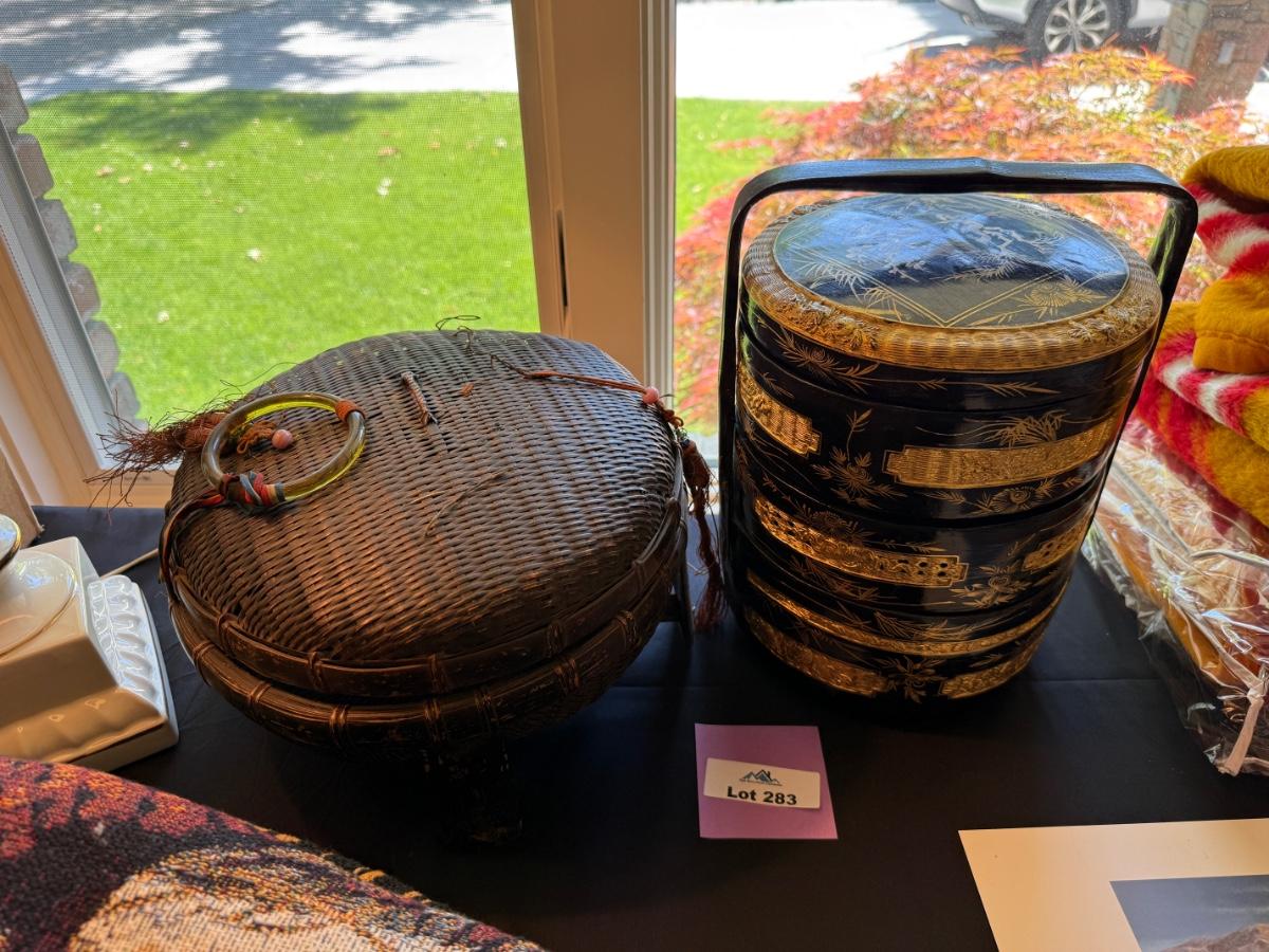 Woven Basket w/Lid and 3 tiered stacking boxes