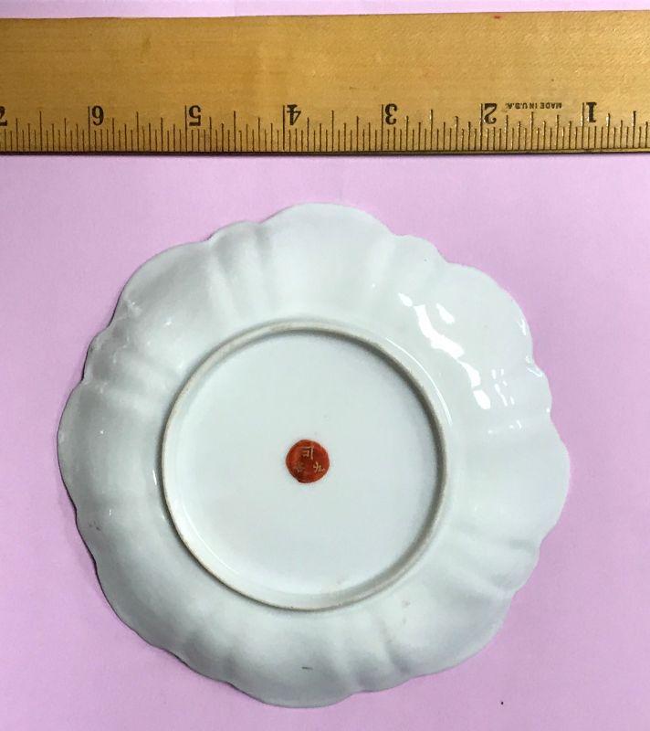 Highly decorated Asian plate. Colorful design. Scalloped edge. Under 6" diameter.