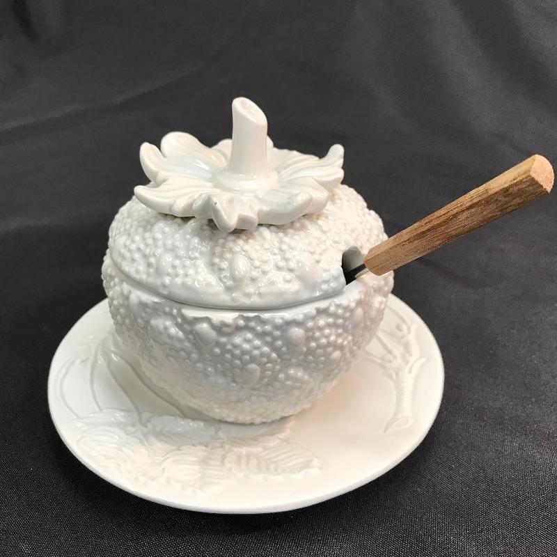 Decorative Berry Sauce Boat w. Lid & Scoop from Italy