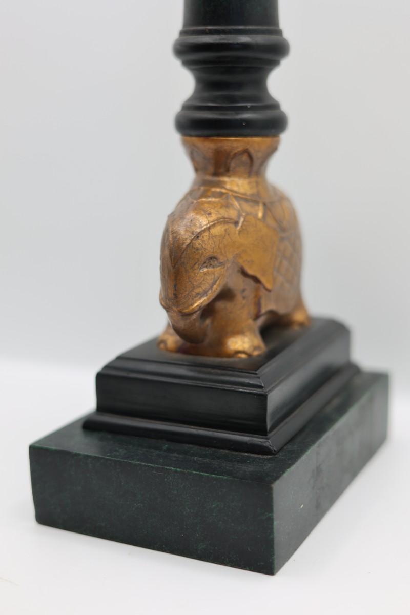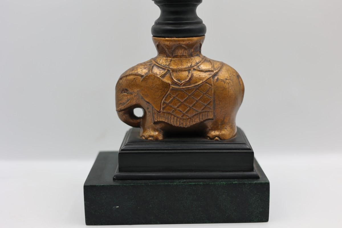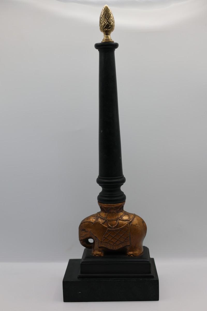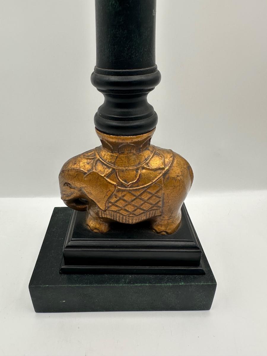 Decorative Black Column Accent with Gold Elephant Base & Pineapple Finial