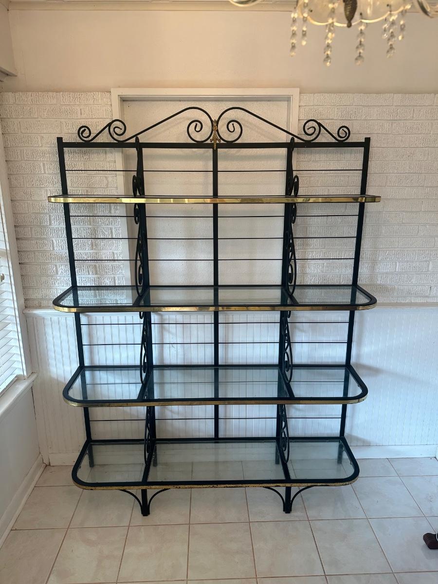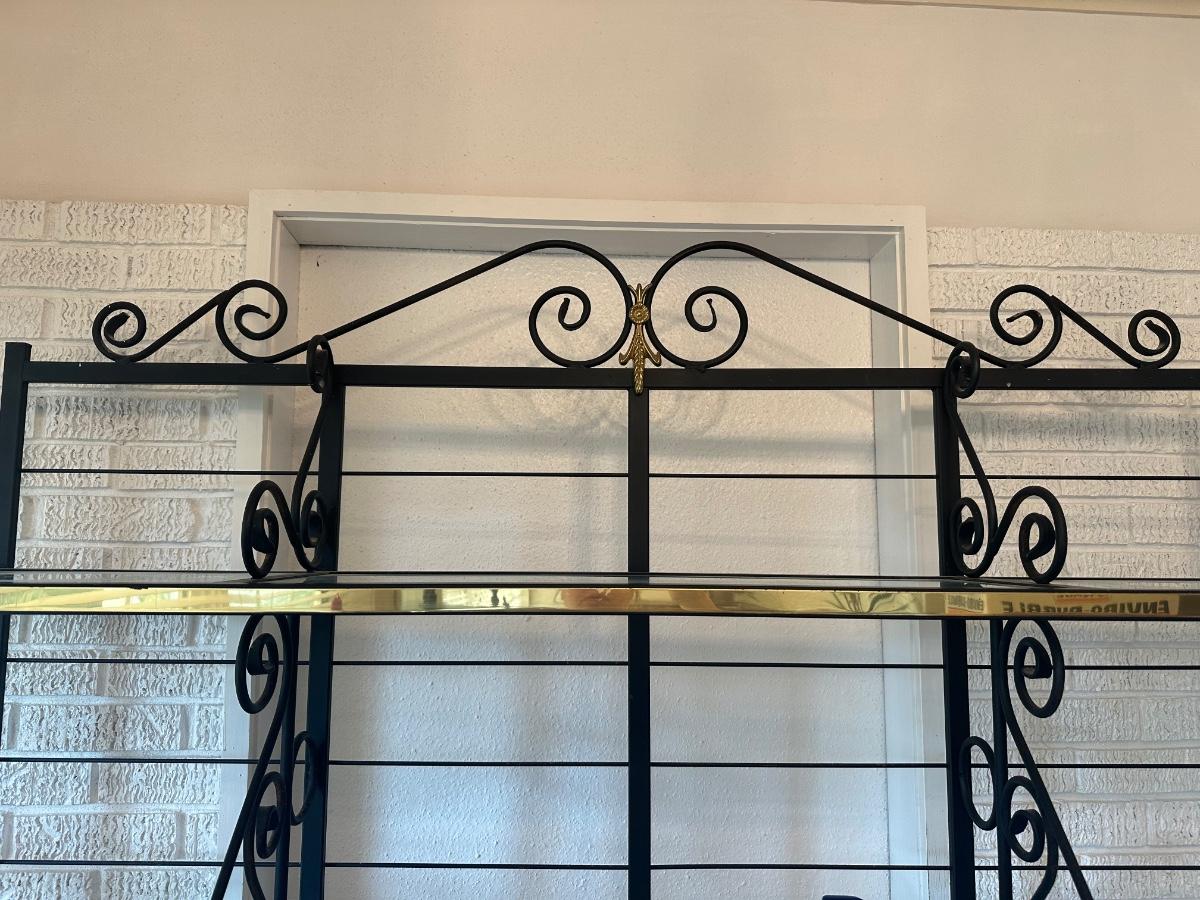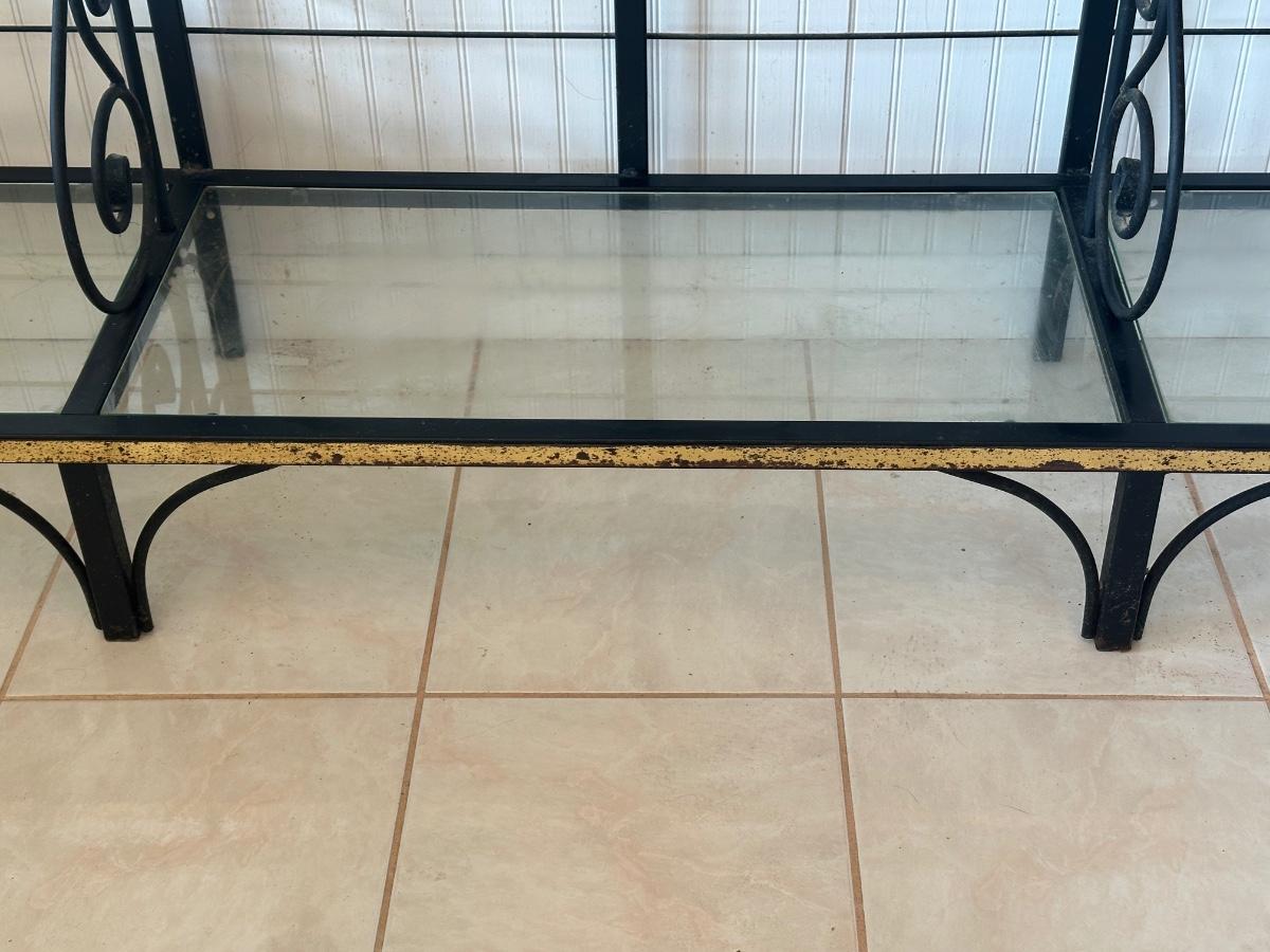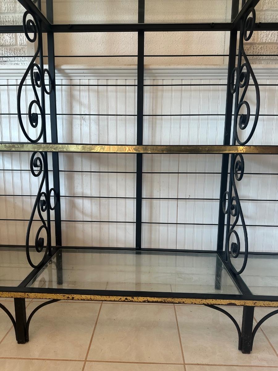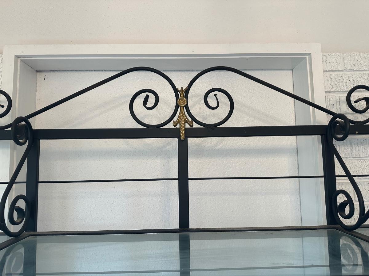 Decorative Black Metal Glass Display Shelving Unit with Scrollwork