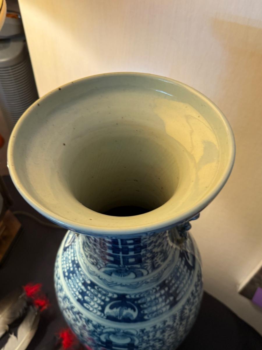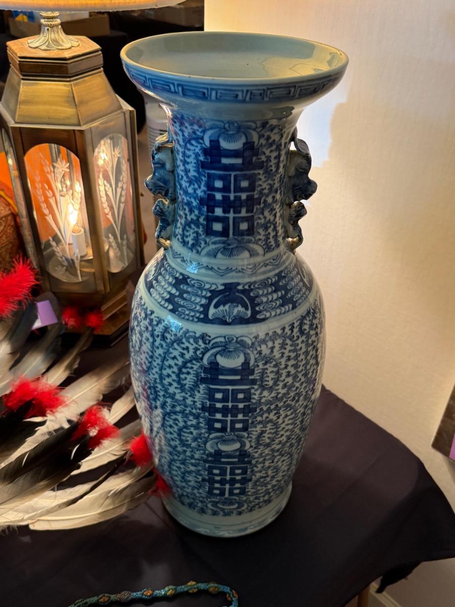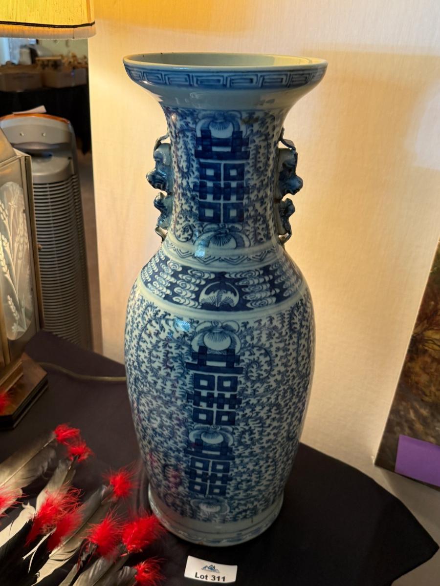 24”t Blue & White 19th Century Chinese Vase