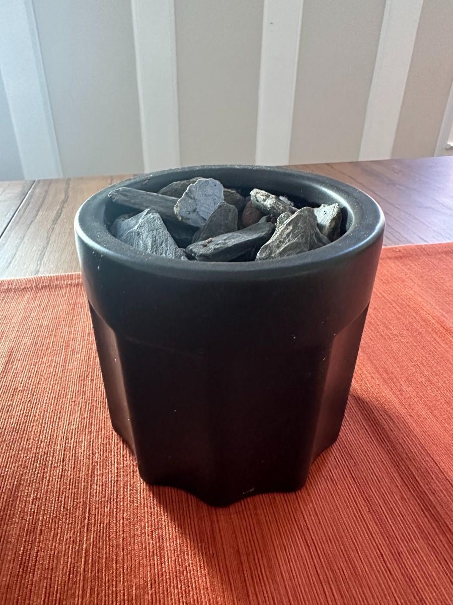 Decorative Bowl Arrangement & Black Planter w/Slate Rock Pcs