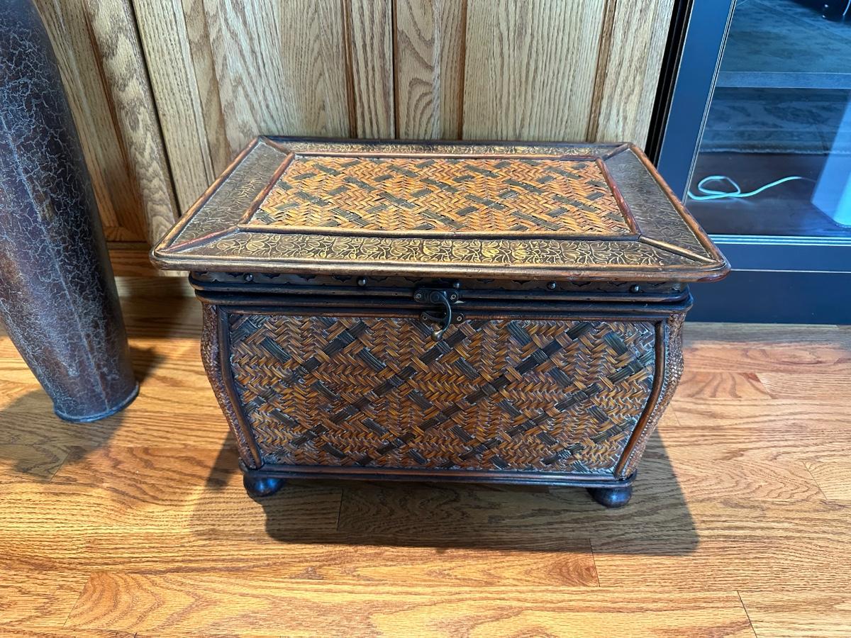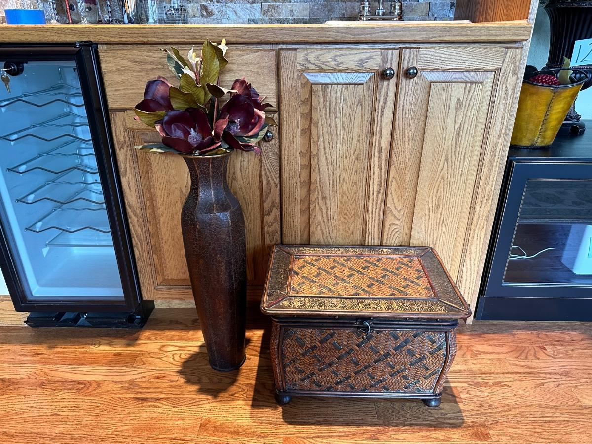DECORATIVE BOX AND VASE WITH FAUX FLOWERS